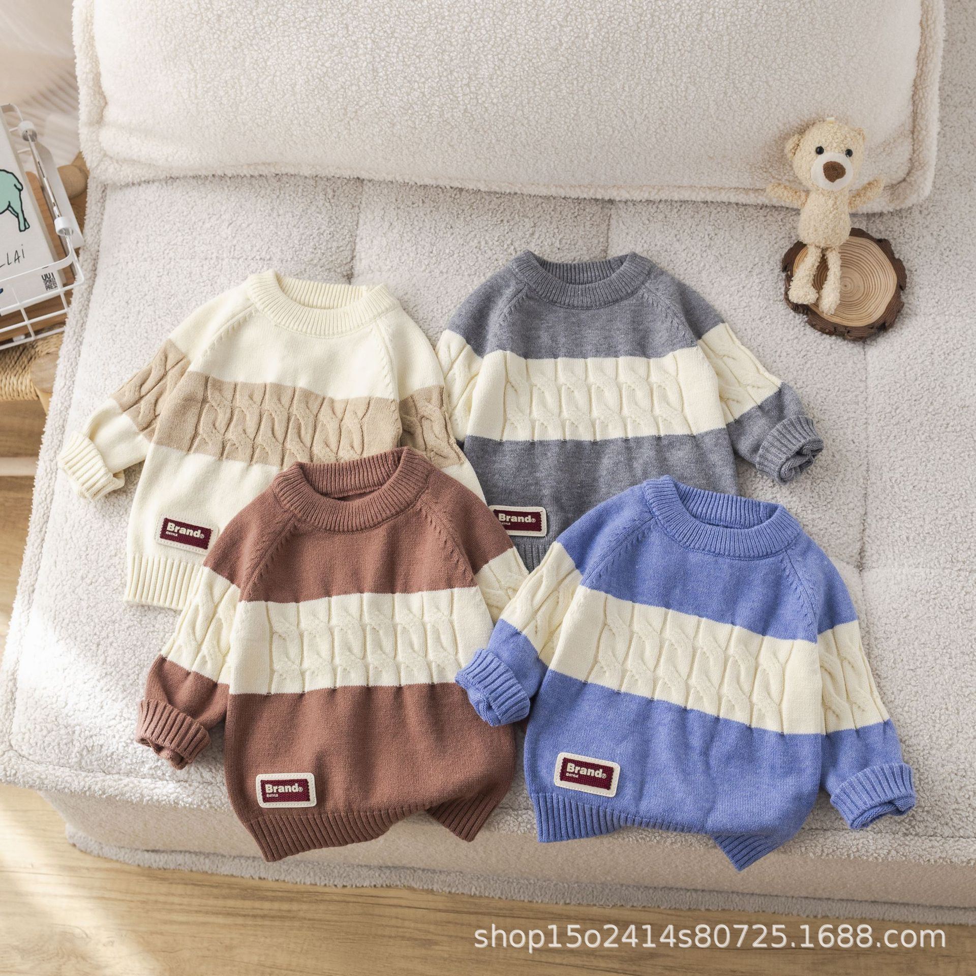어린이 가을, 겨울 새로운 줄무늬 트위스트 스웨터 아기 소년 캐주얼 루즈 풀오버 아기 니트 탑 대외 무역스토어 가기