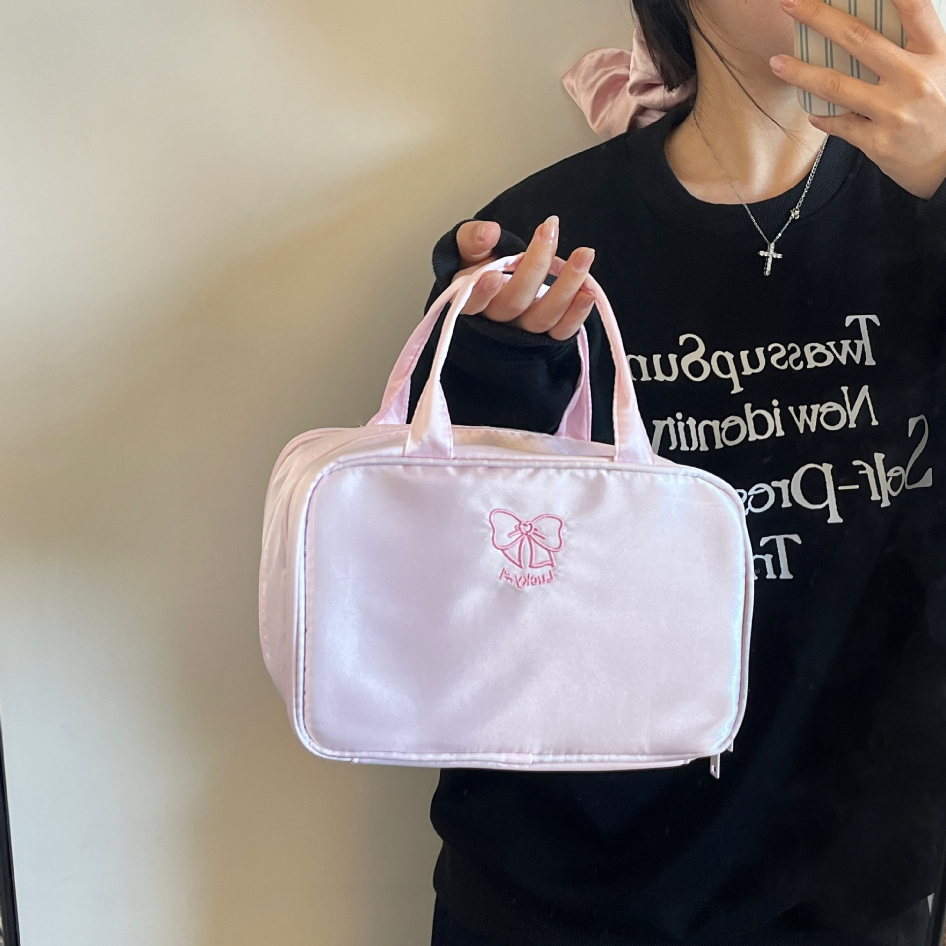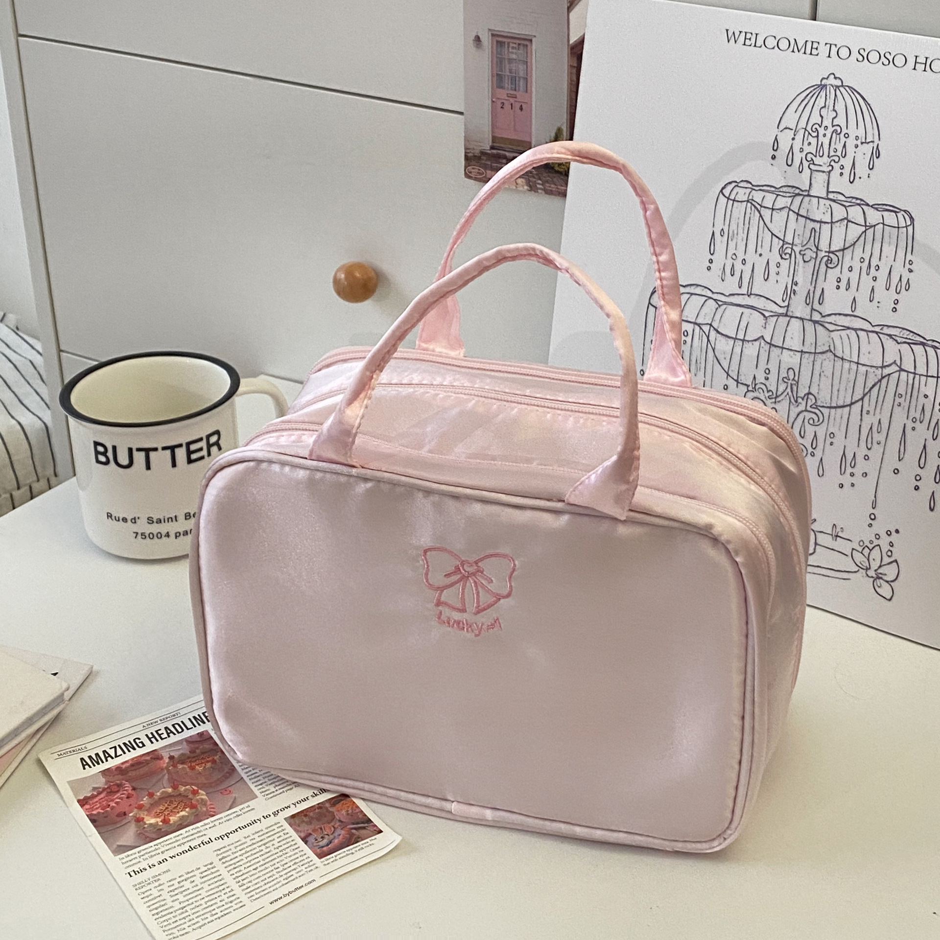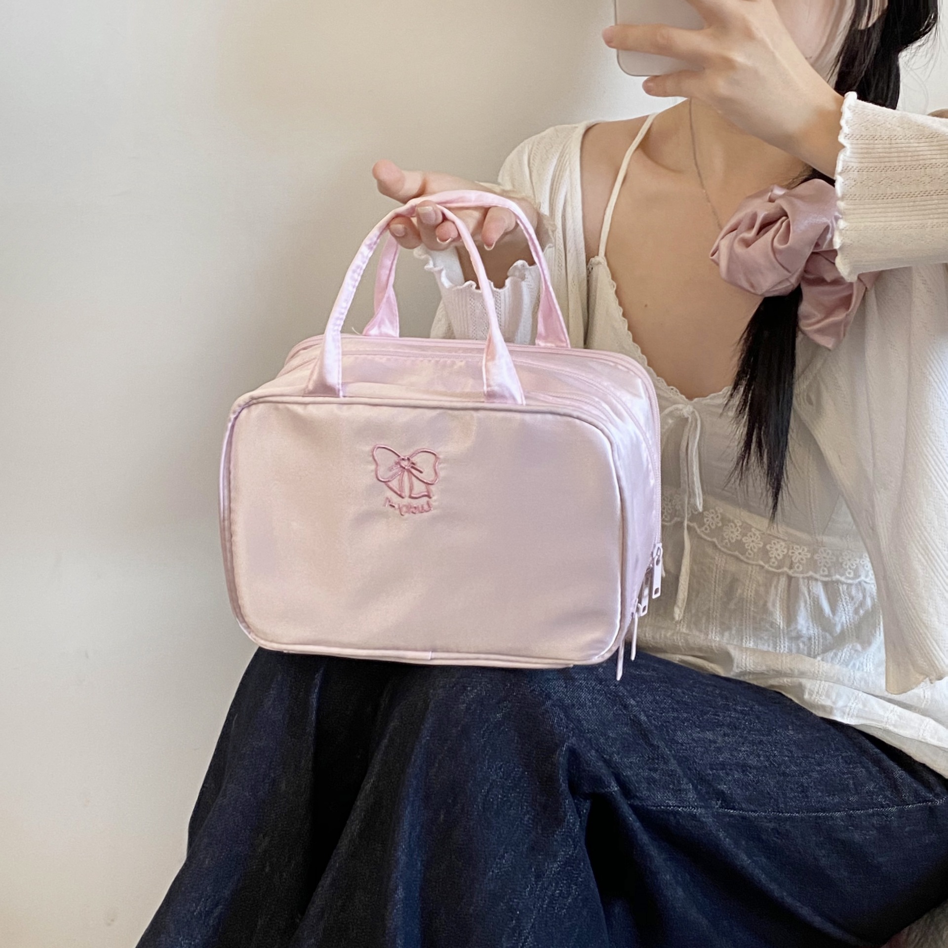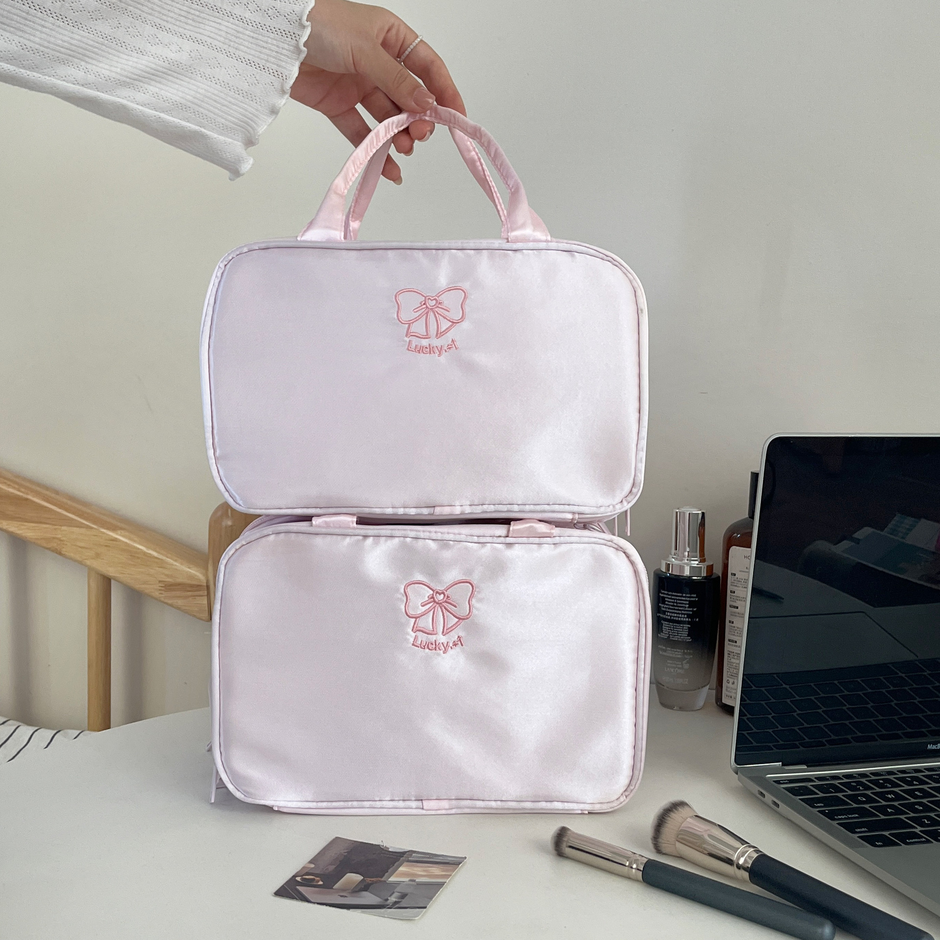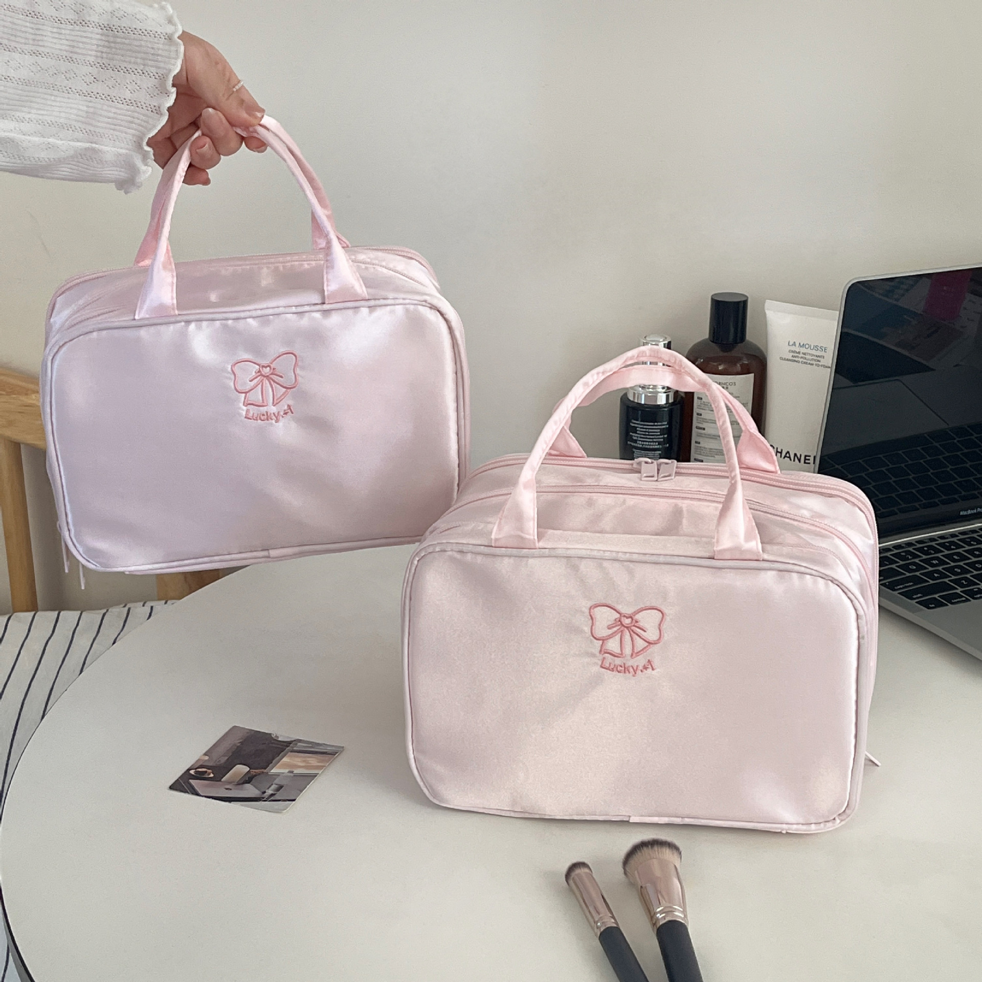 소녀 핑크색 3단 화장품 가방 대용량 여행용 화장품 수납 가방 휴대용 외출용 핸드백형 화장품 파우치스토어 가기
