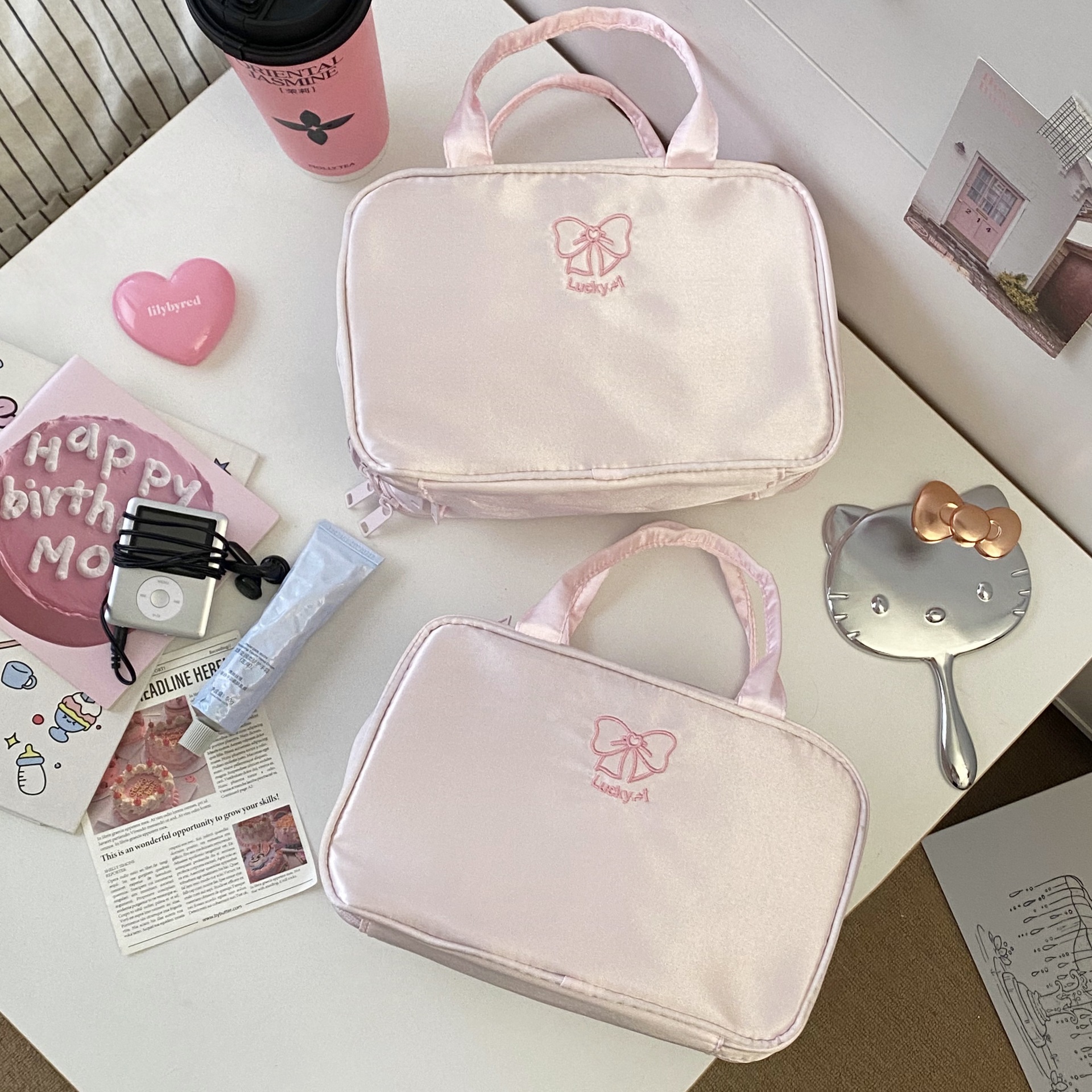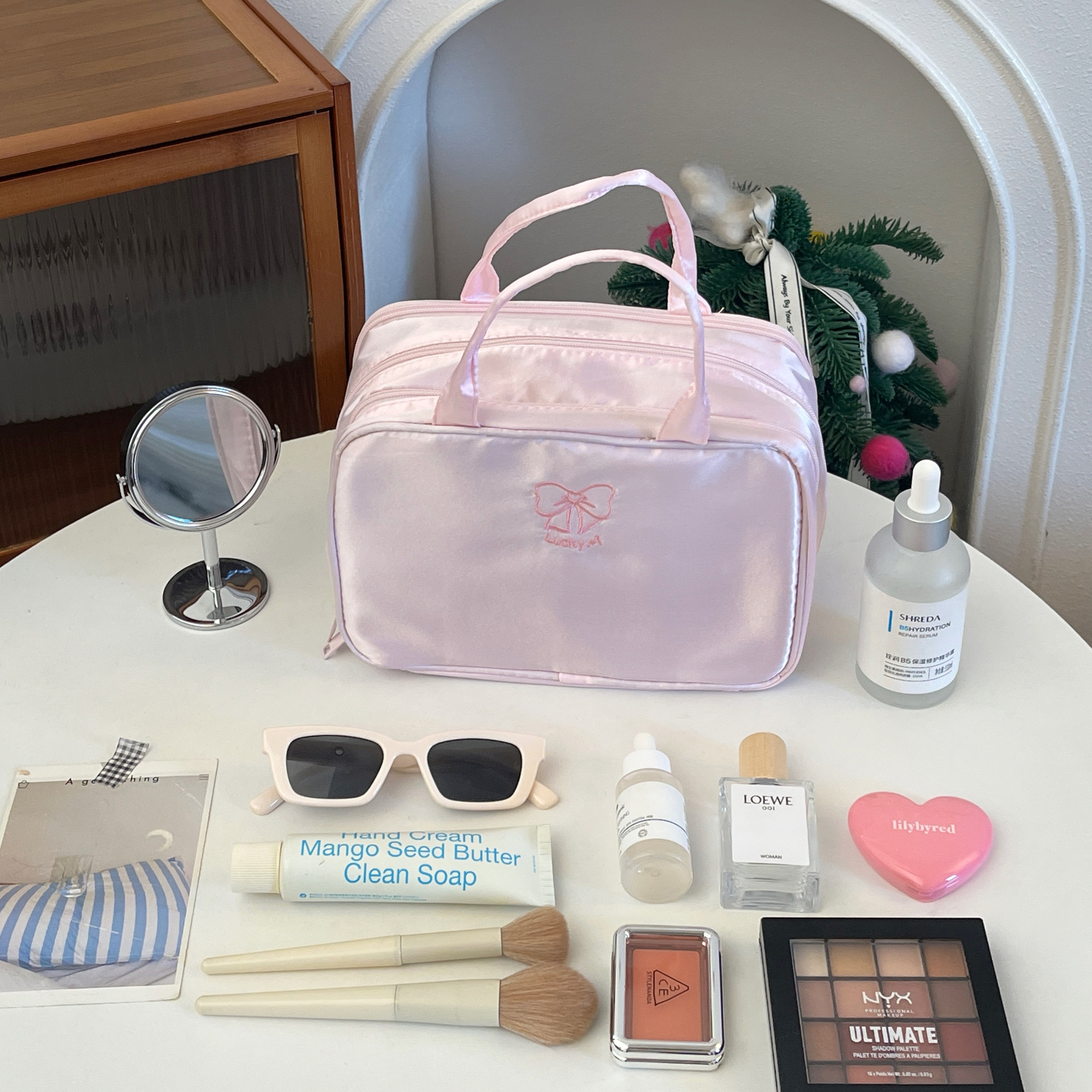 소녀 핑크색 3단 화장품 가방 대용량 여행용 화장품 수납 가방 휴대용 외출용 핸드백형 화장품 파우치