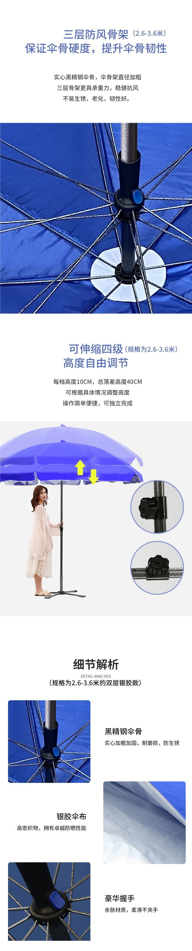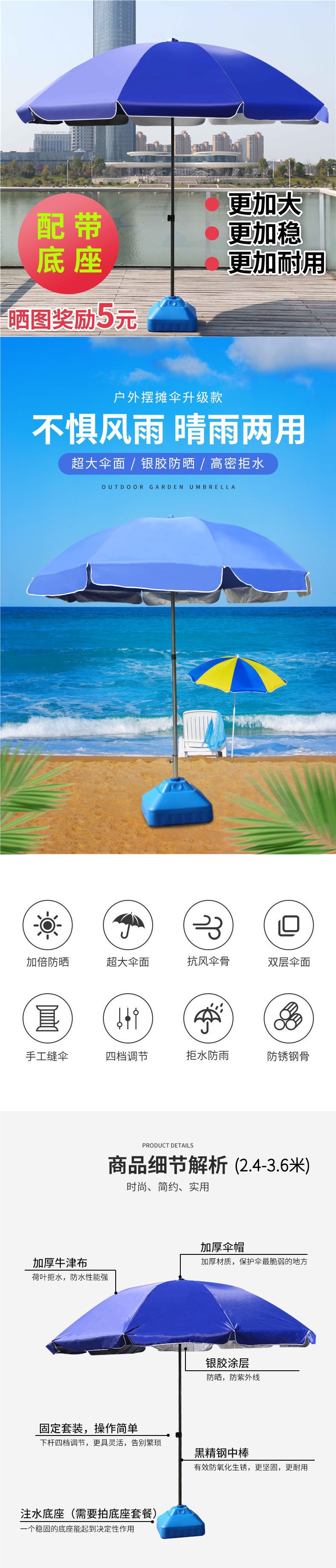 • 2.6m 업그레이드된 블루 + 더블 레이어 실버 젤 자외선 차단제