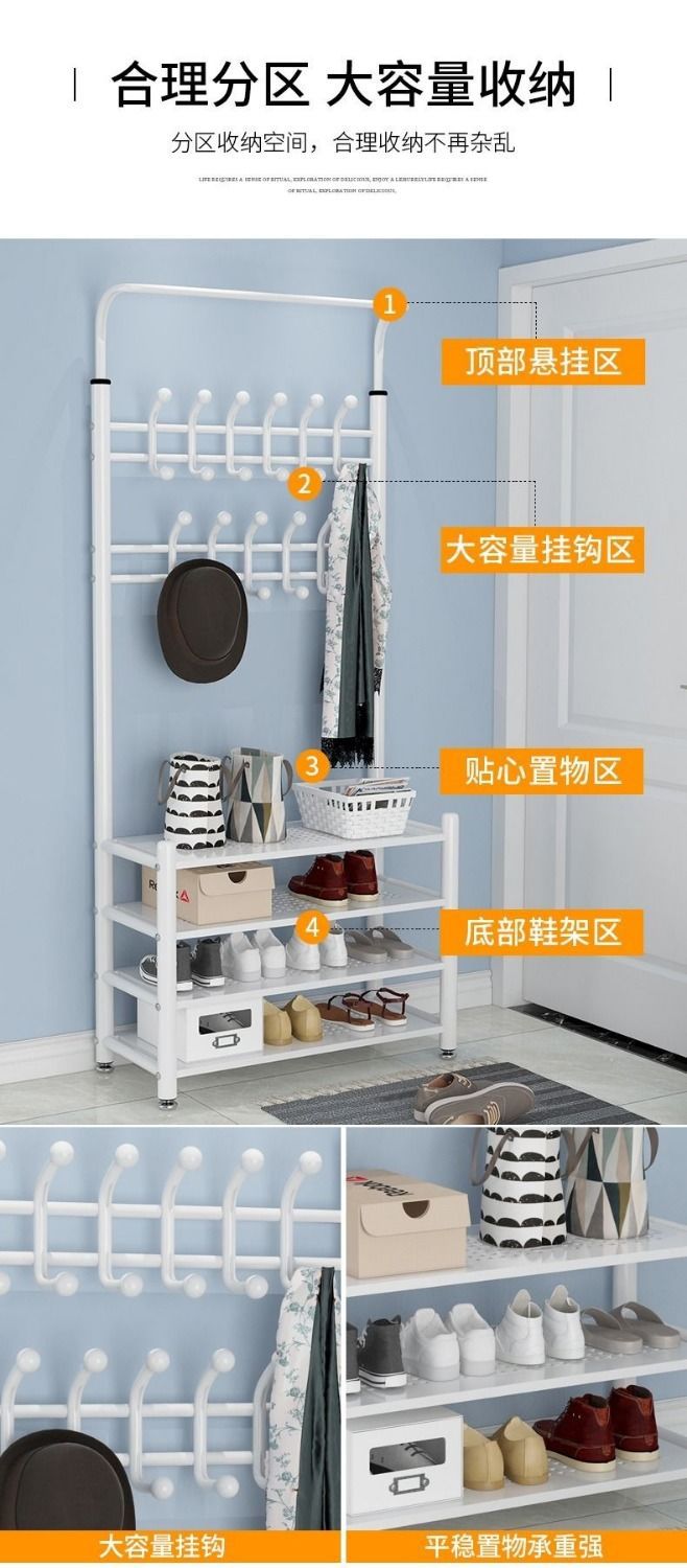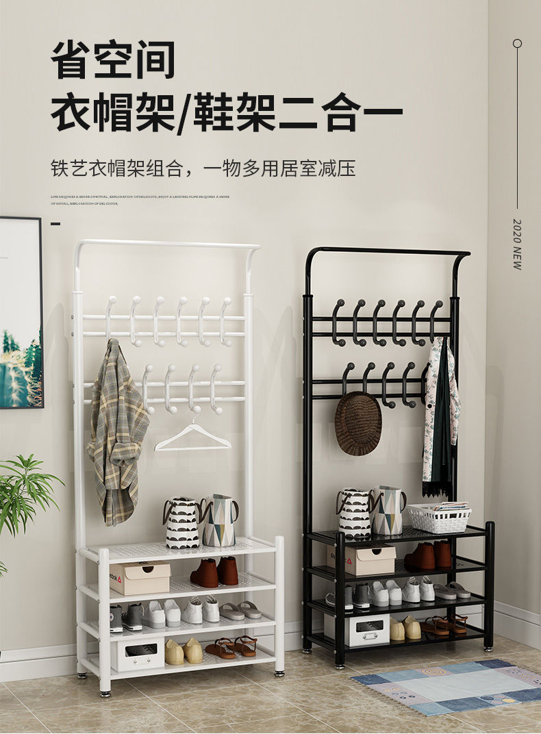 코트 랙, 바닥에서 천장까지 침실 옷걸이, 다기능 옷걸이, 신발장, 수납 선반 조합, 간단한 거실 가방 걸이, 신발장스토어 가기