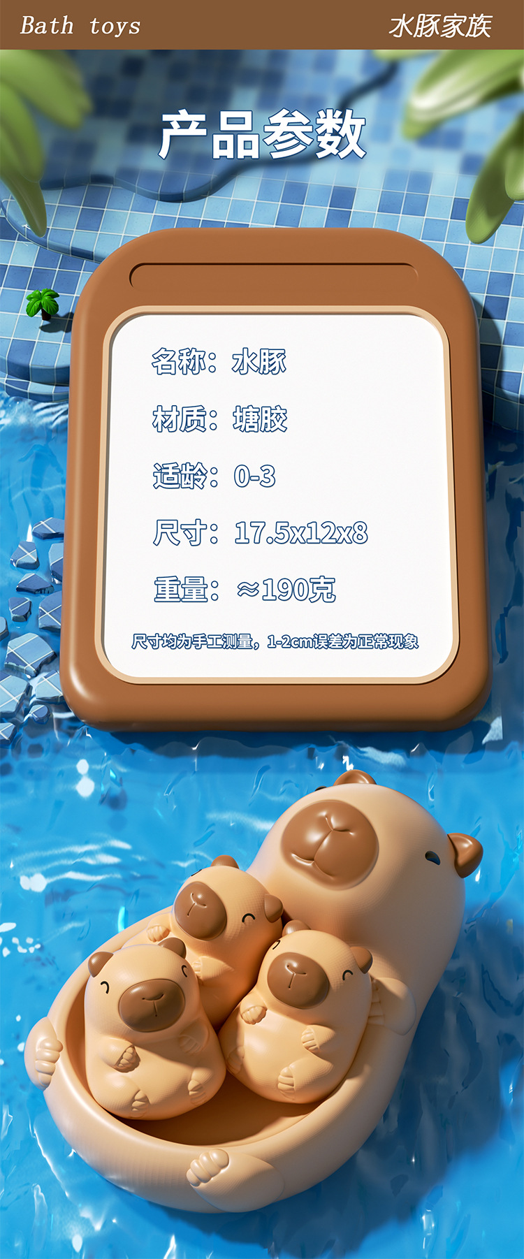 욕실 물놀이 카피발라라 플로팅 동물 밀봉 유아 목욕 물놀이 교육용 어린이 장난감스토어 가기