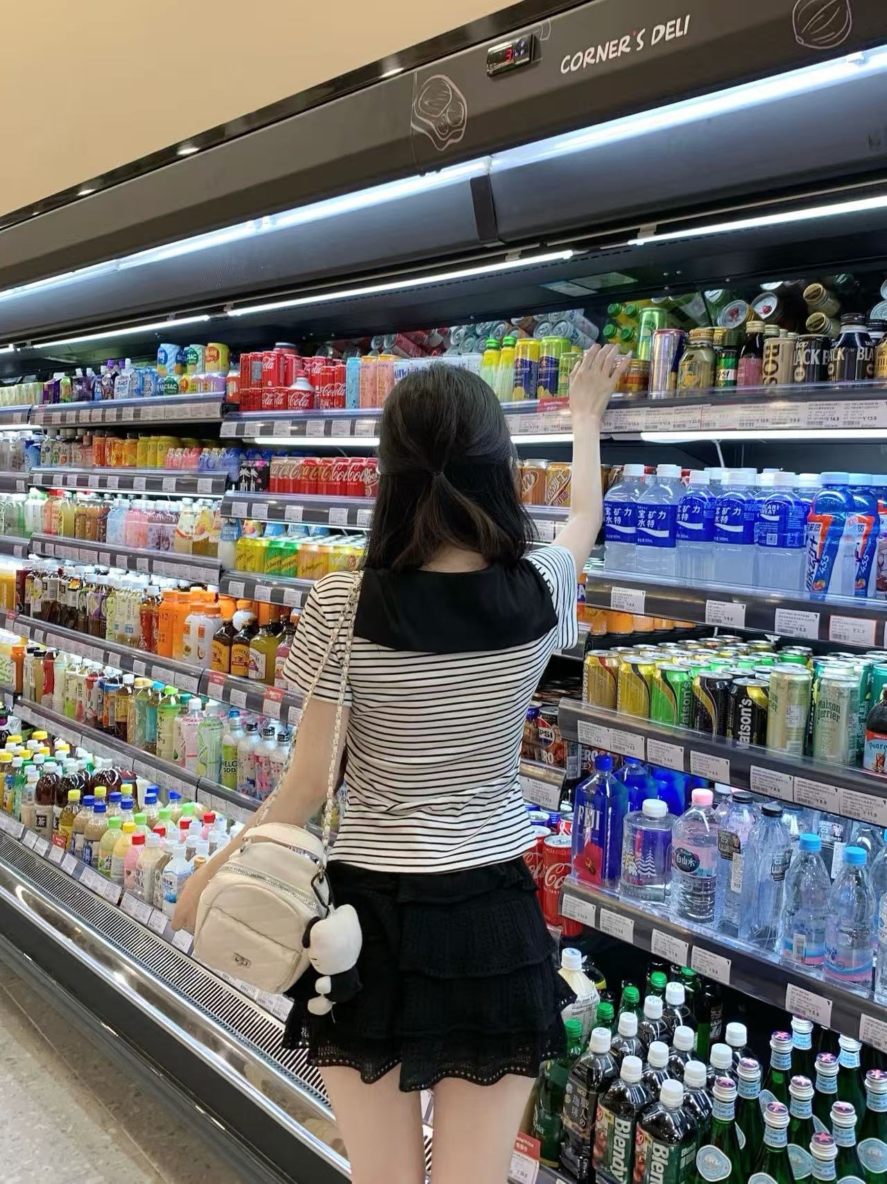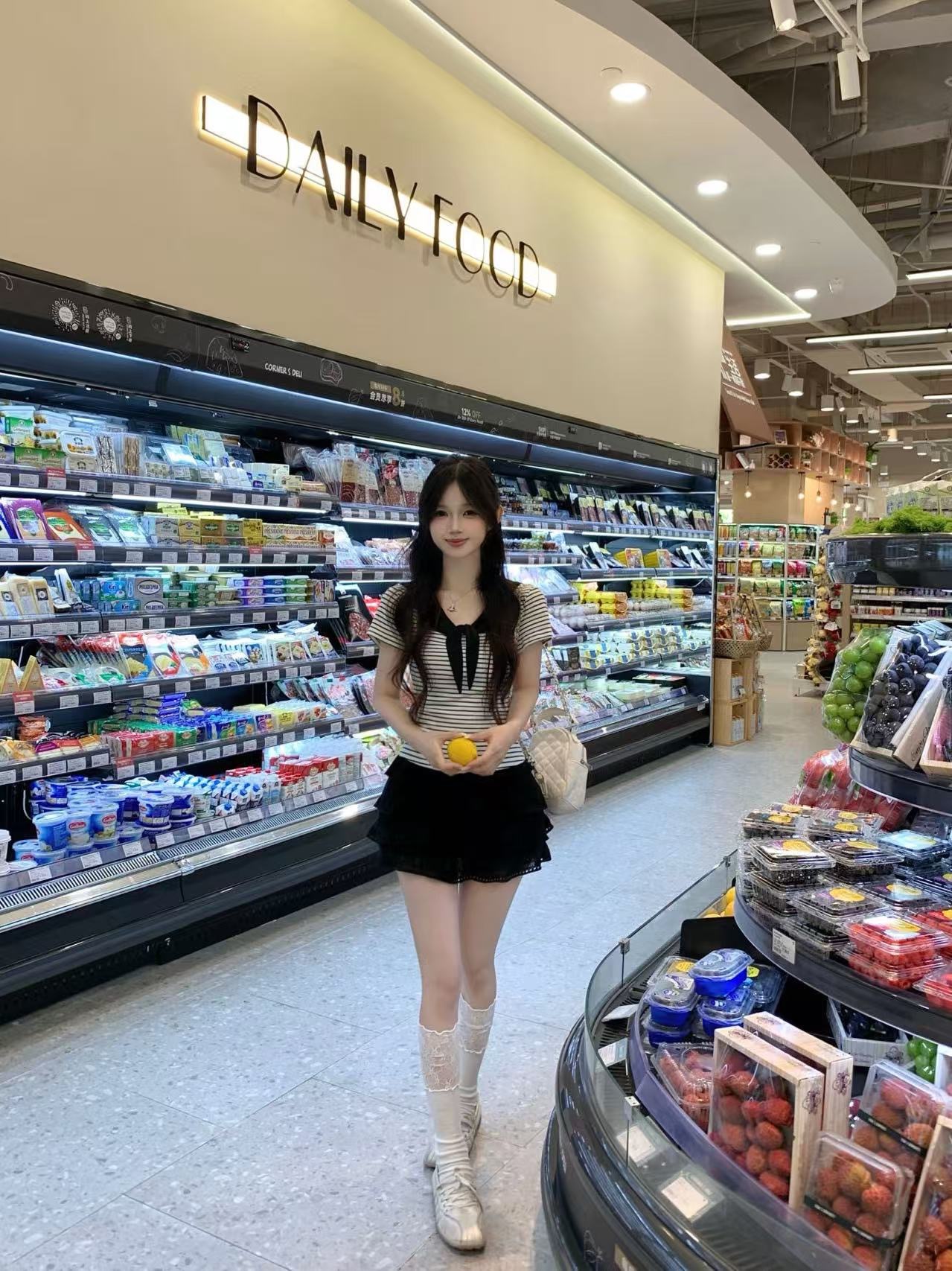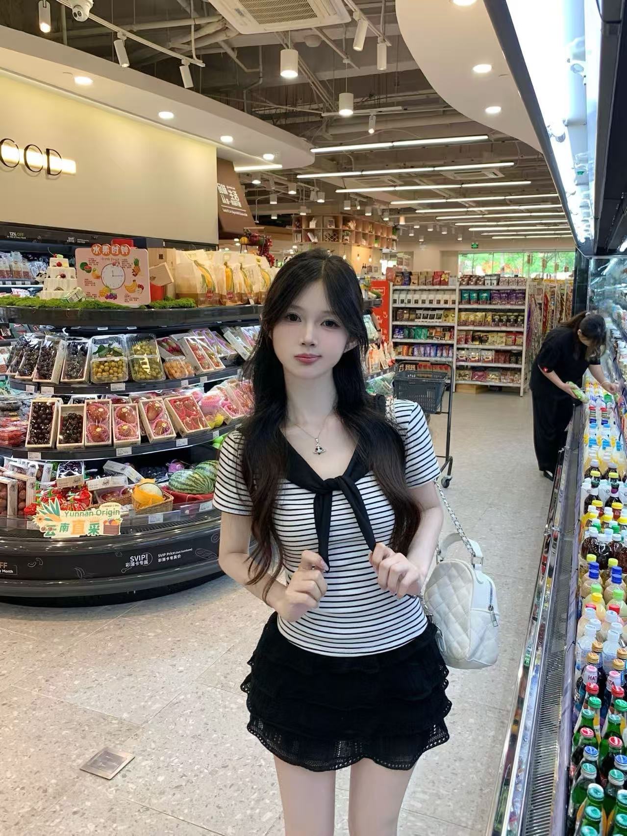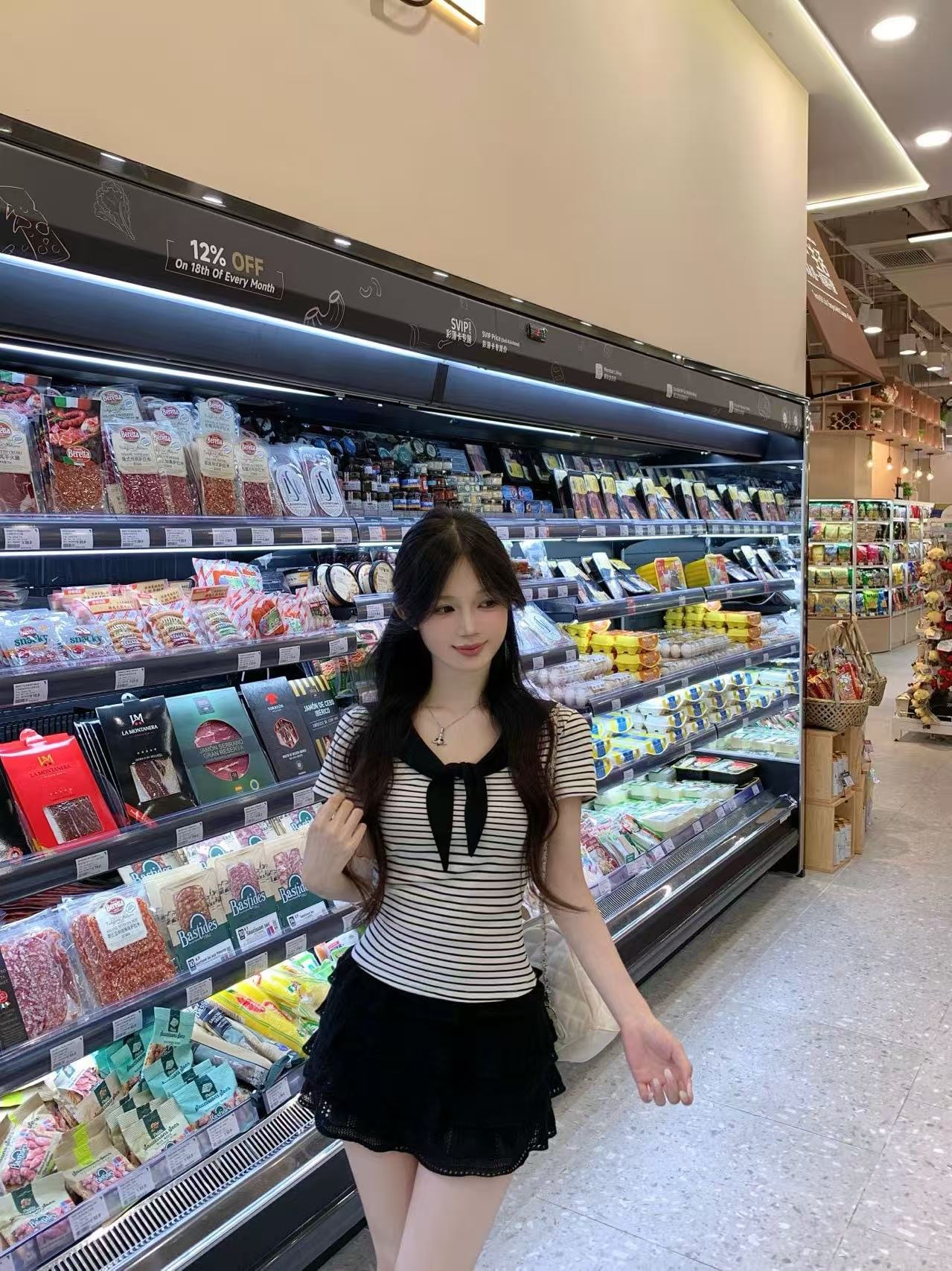 달콤한 스타일 대비 스트라이프 네이비 칼라 반팔 티셔츠 여성 여름 한국 스타일 틈새 시크 슬리밍 탑스토어 가기