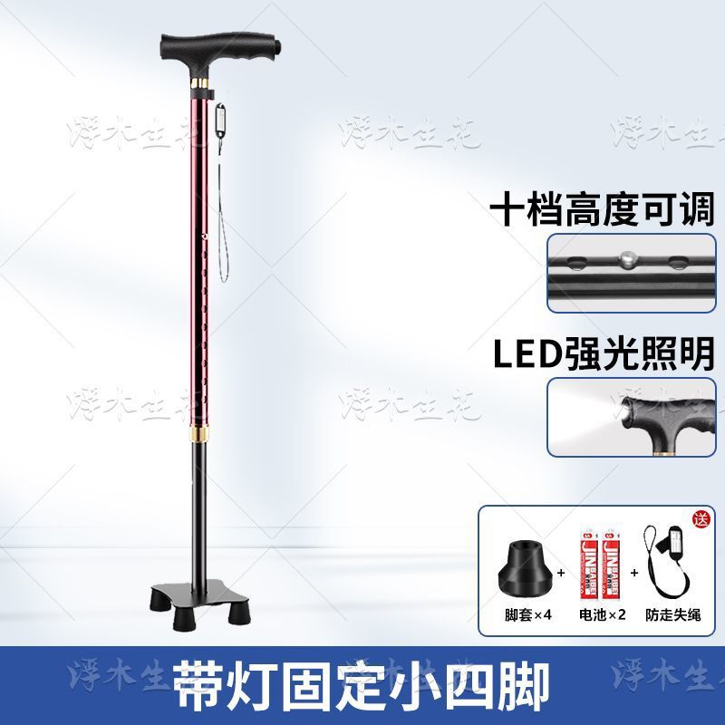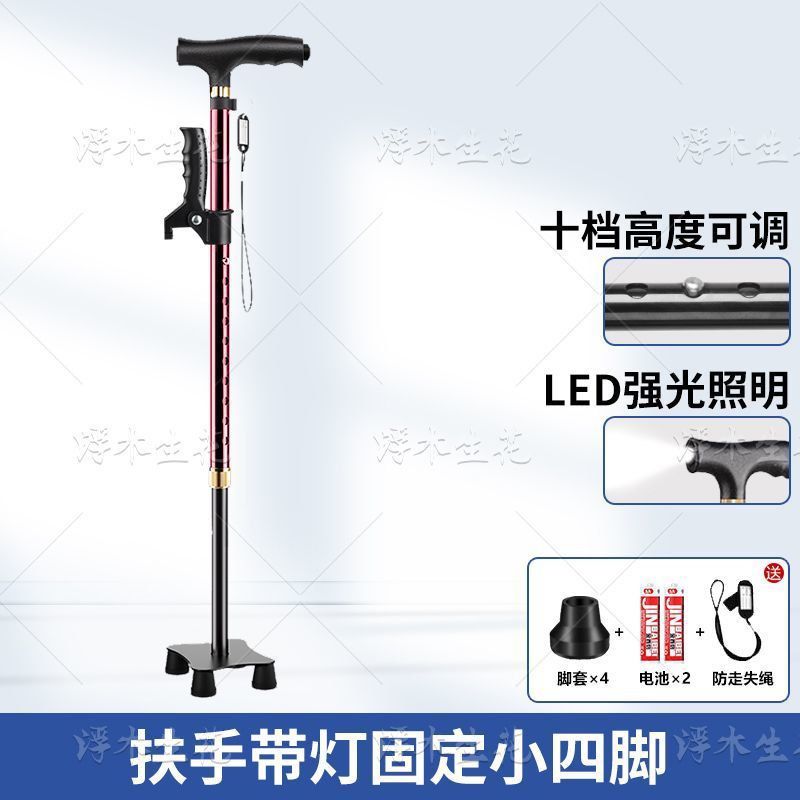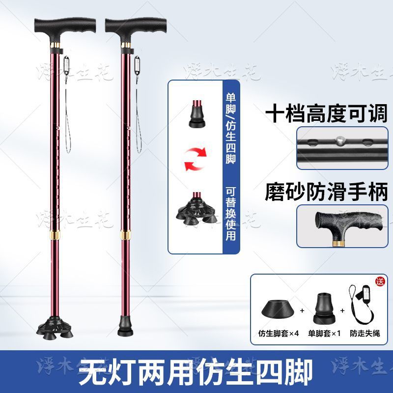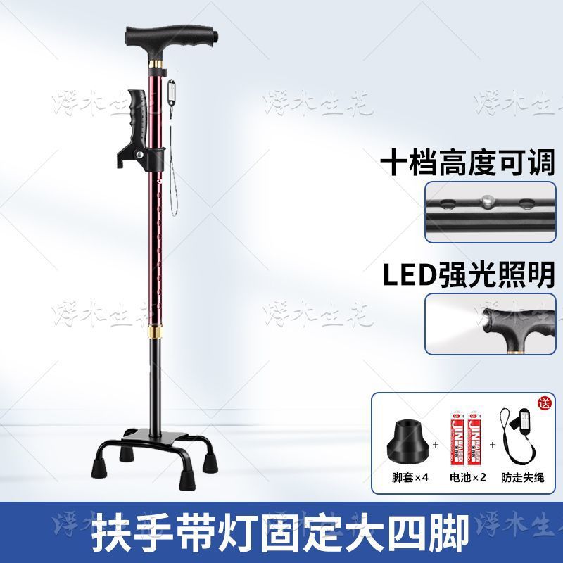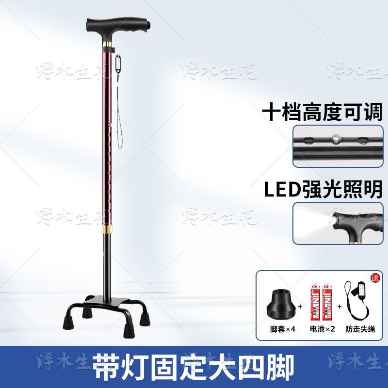노인용 지팡이, 조명, 미끄럼 방지, 강력하고 낙하 방지 지팡이, 접이식 지팡이, 노인용 4각 지팡이, 다기능스토어 가기