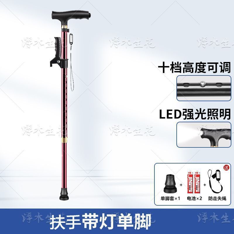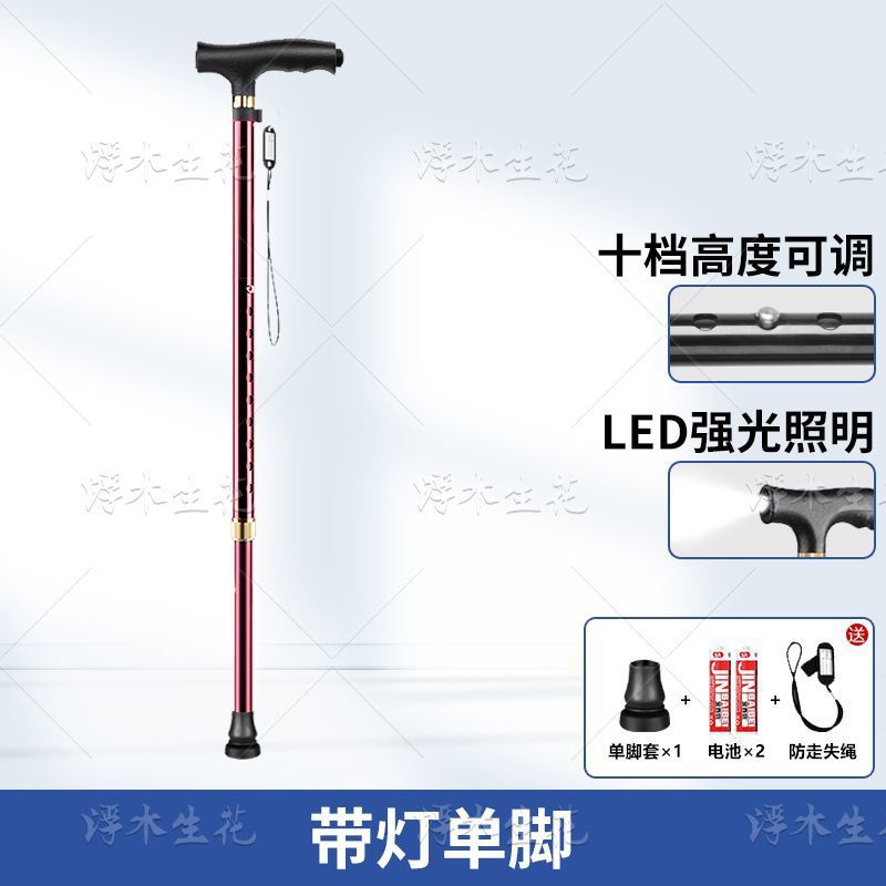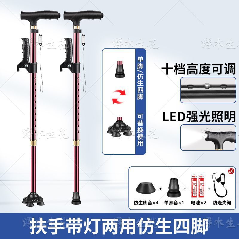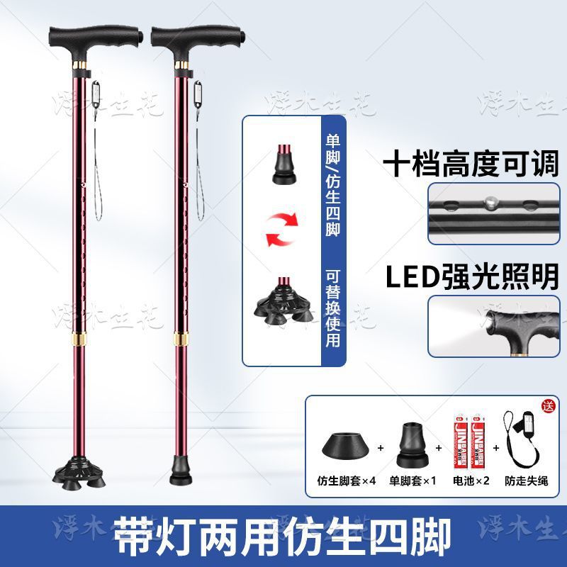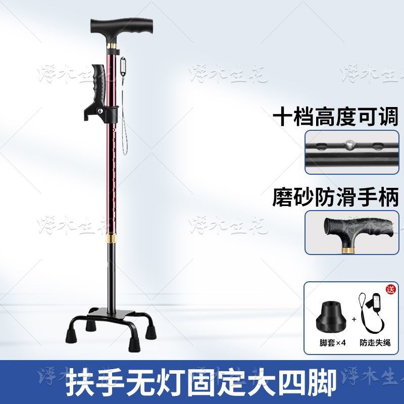 노인용 지팡이, 조명, 미끄럼 방지, 강력하고 낙하 방지 지팡이, 접이식 지팡이, 노인용 4각 지팡이, 다기능스토어 가기