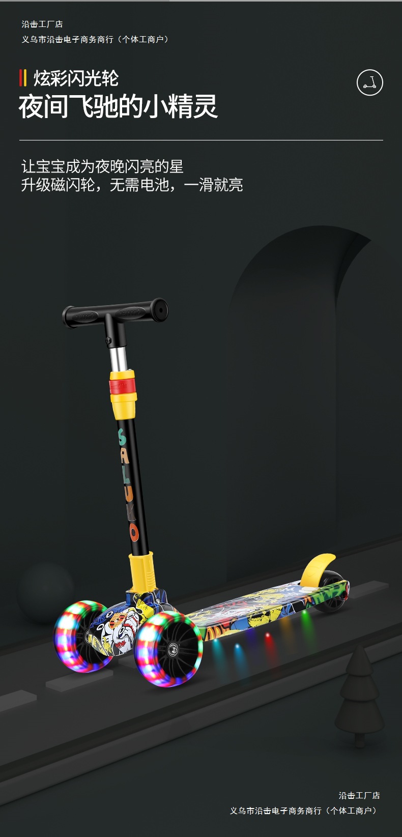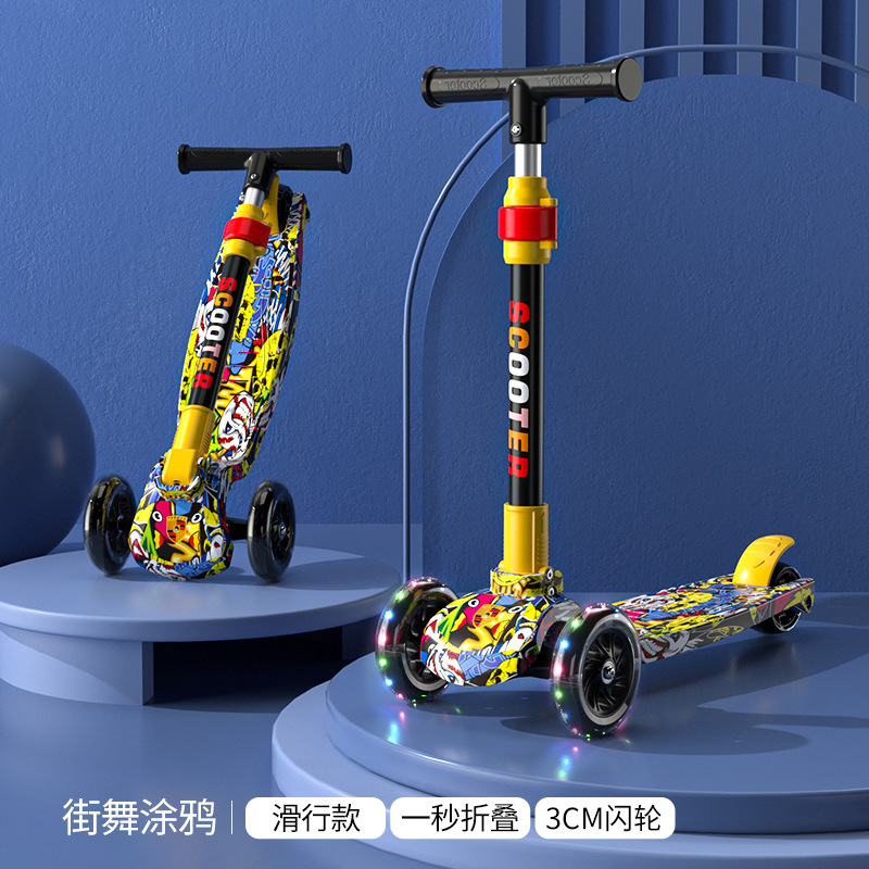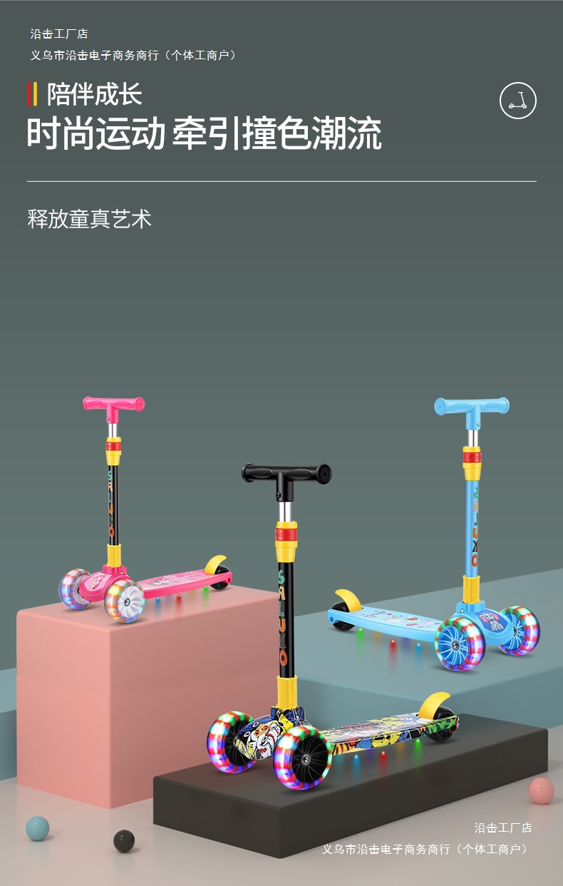 3-6-12세 이상의 어린이를 위한 와이드 휠 스쿠터, 음악이 포함된 접이식 스케이트보드, 어린이용 스케이트보드스토어 가기
