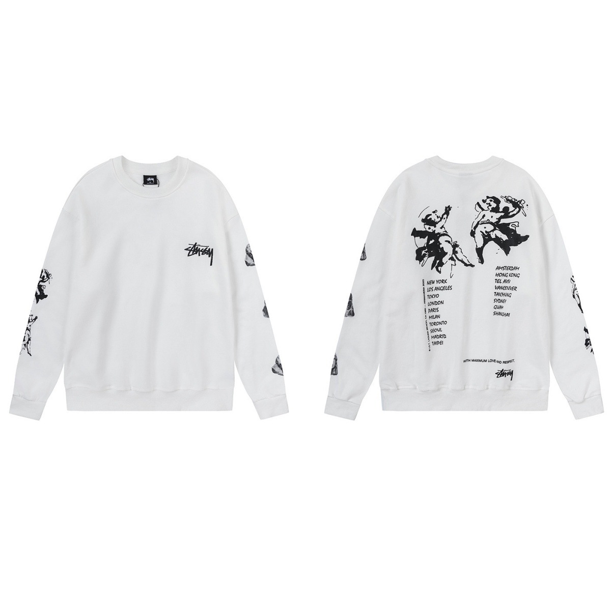 국경을 넘는 도매 STU 미식 패션 스트리트 스케이트보드 캐주얼 남성 긴팔 티셔츠 후드티 프린트 봄 가을 컬렉션