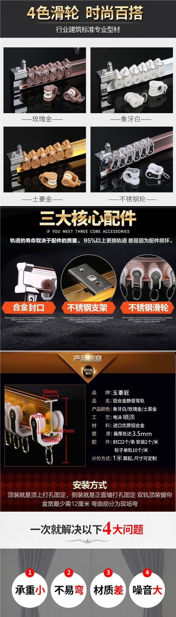 알루미늄 합금 곡선 레일 커튼 트랙 U 자형 자동 베이 창 곡선 풀리 슬라이드 탑 장착 단일 및 이중 가이드 레일 커튼 레일스토어 가기
