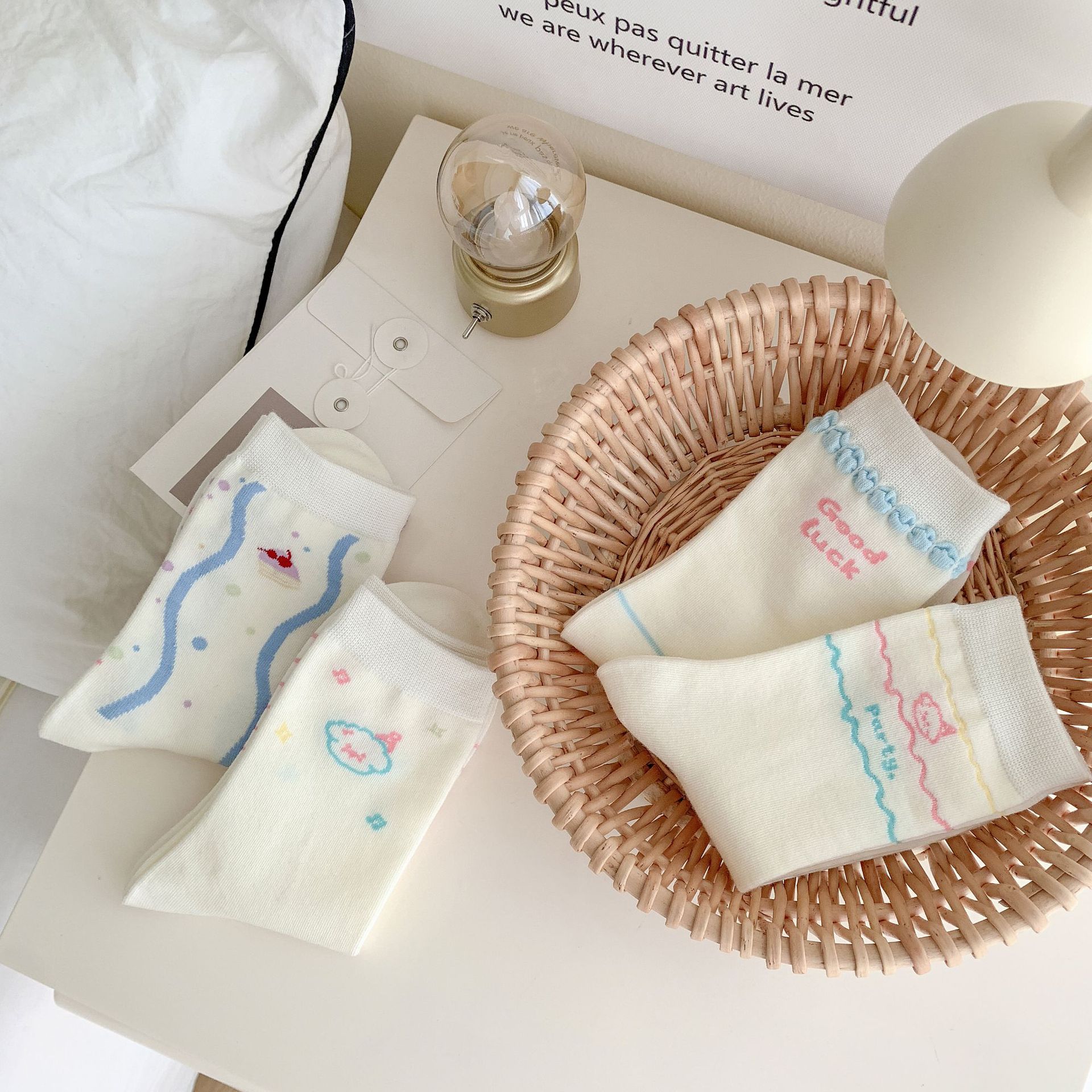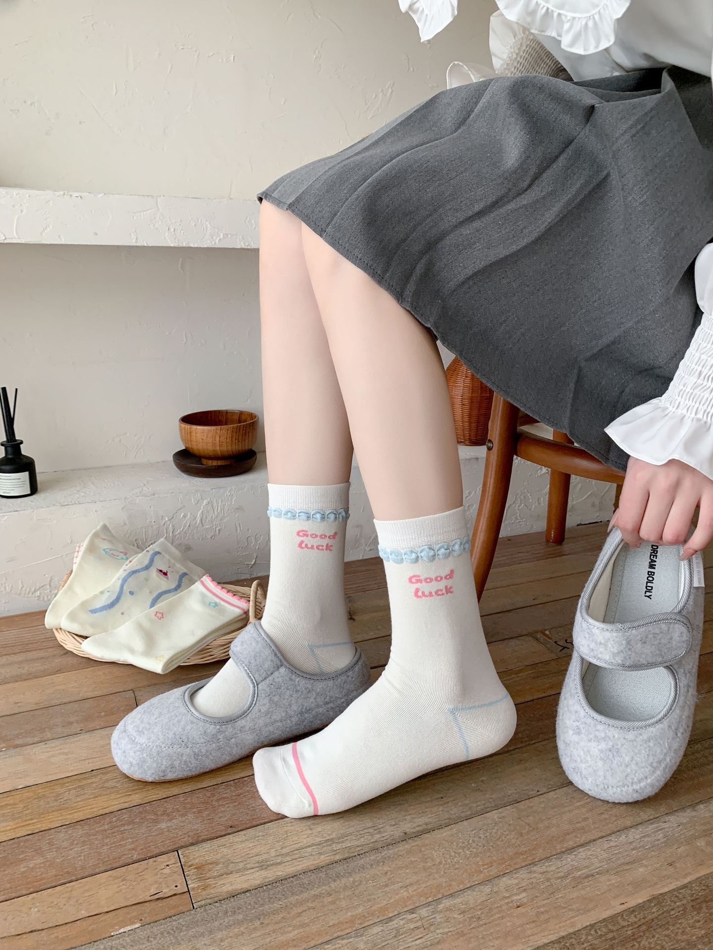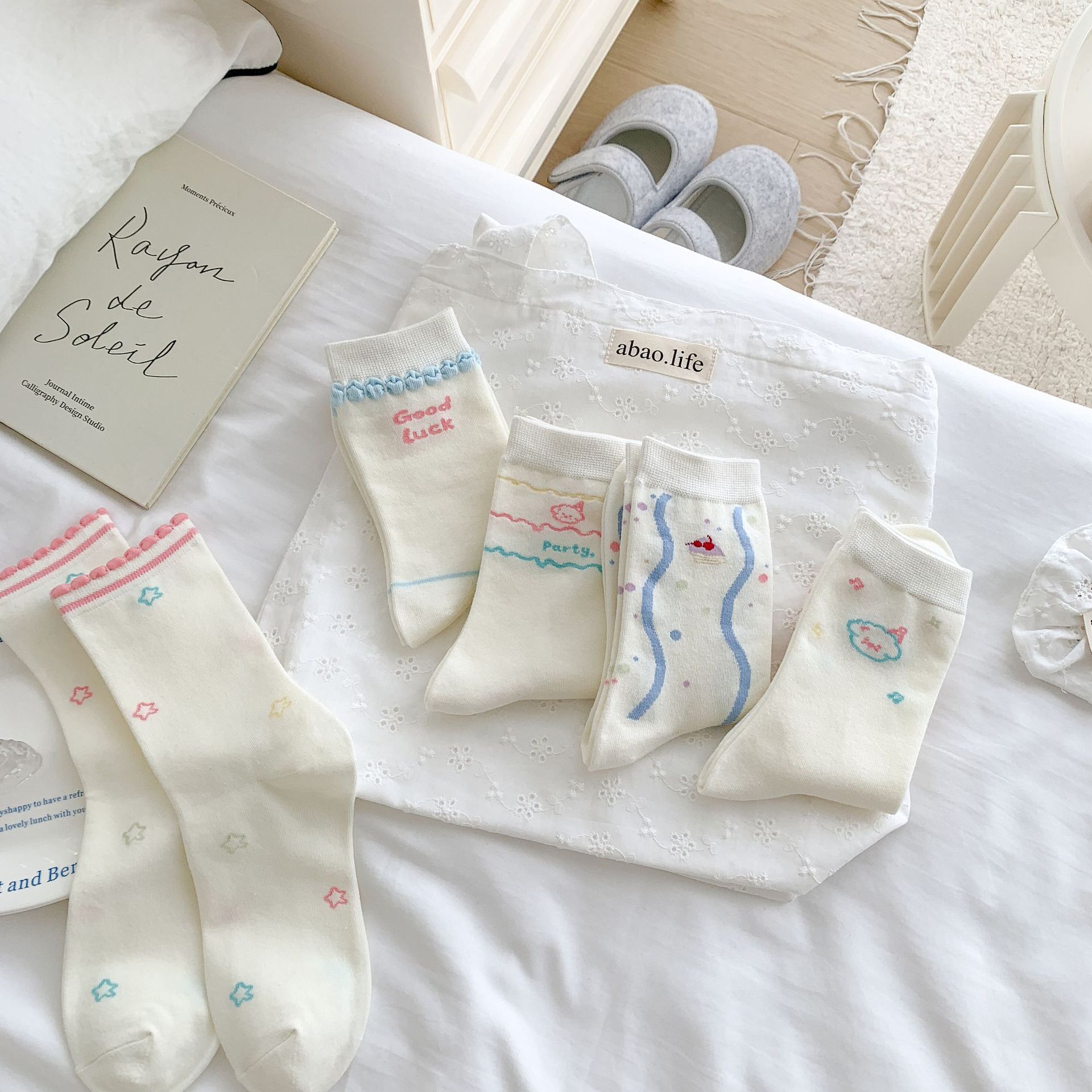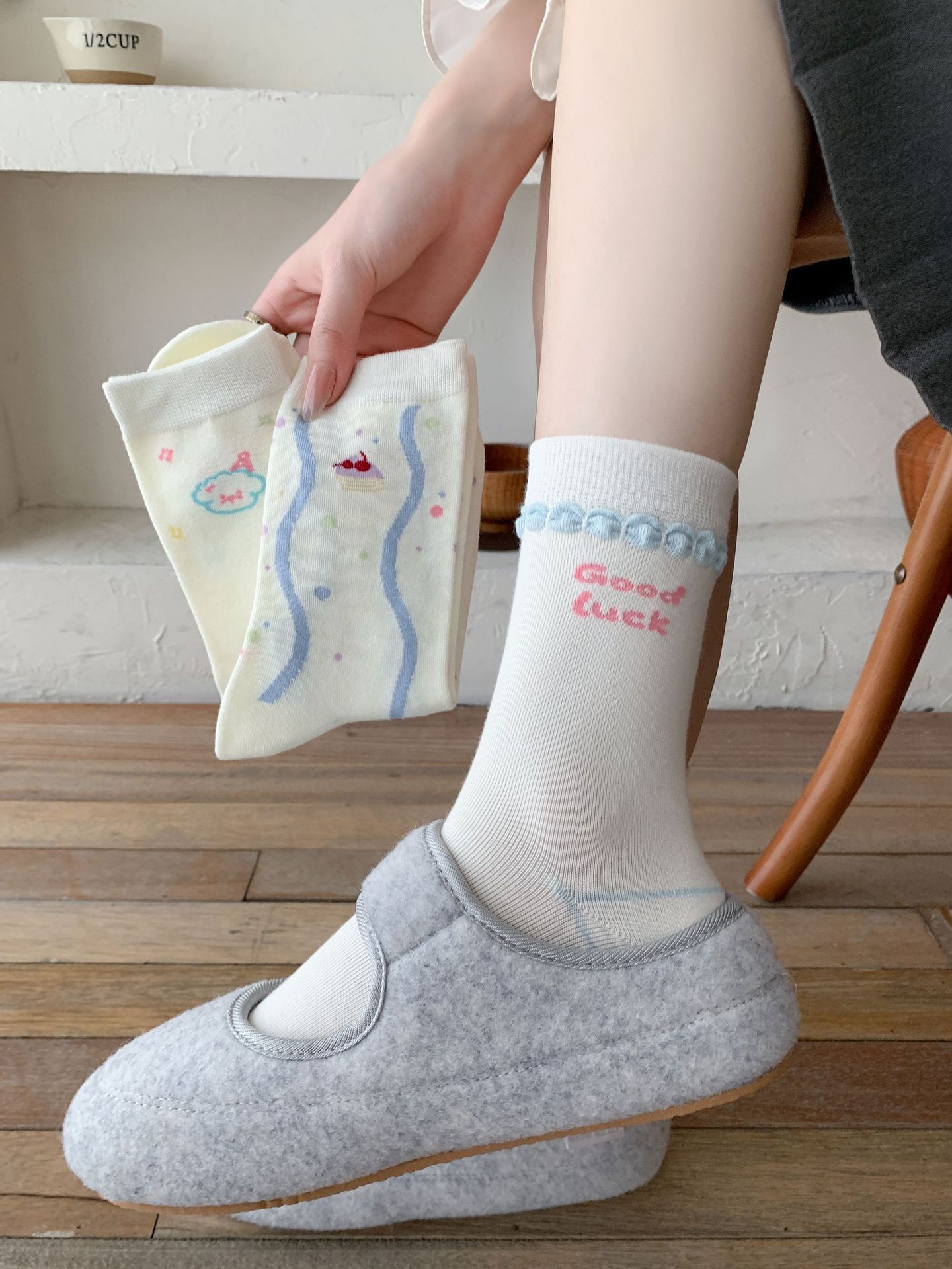 귀여운 양말 여성용 종아리 중간 양말 여름 흰색 파일 양말 도파민 버켄스탁 신발 2025 새로운 핫 스타일 긴 양말스토어 가기