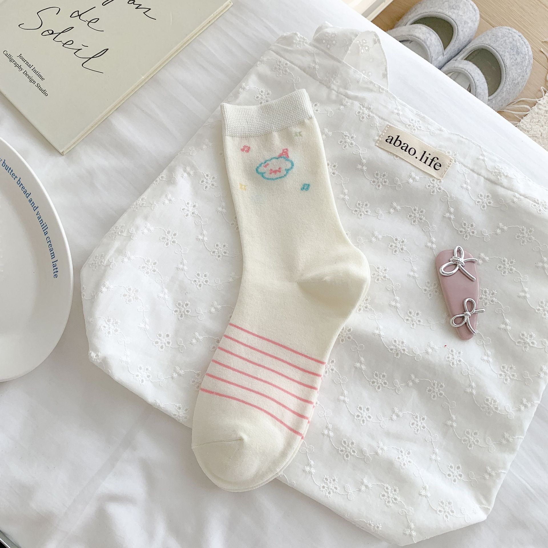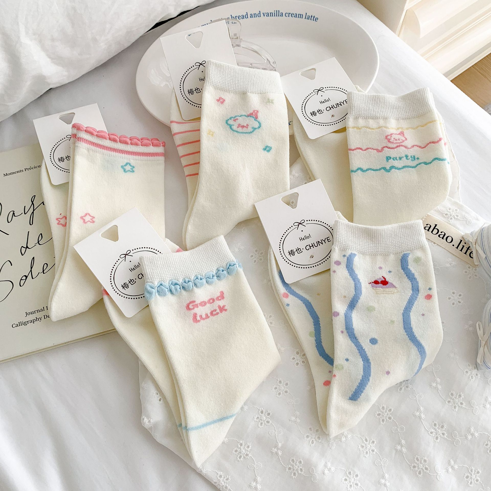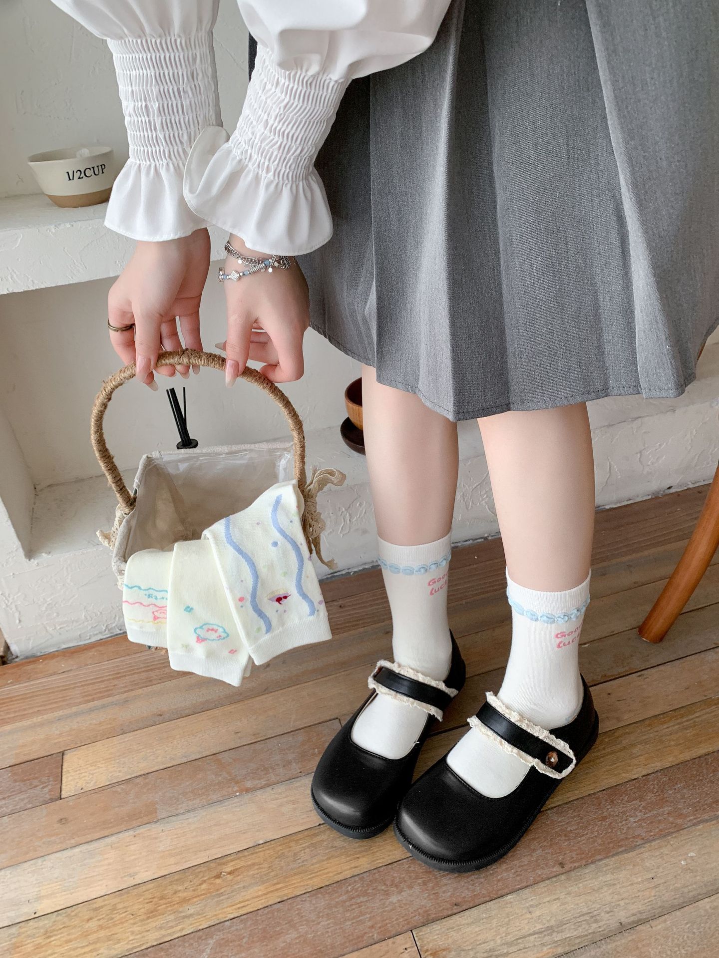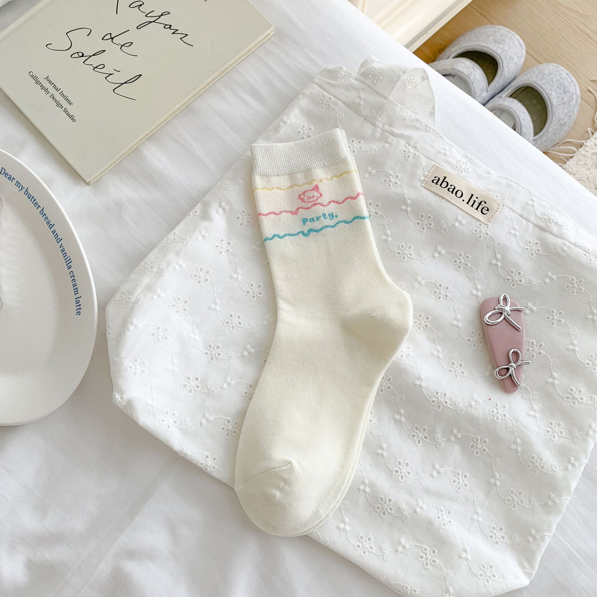 귀여운 양말 여성용 종아리 중간 양말 여름 흰색 파일 양말 도파민 버켄스탁 신발 2025 새로운 핫 스타일 긴 양말스토어 가기