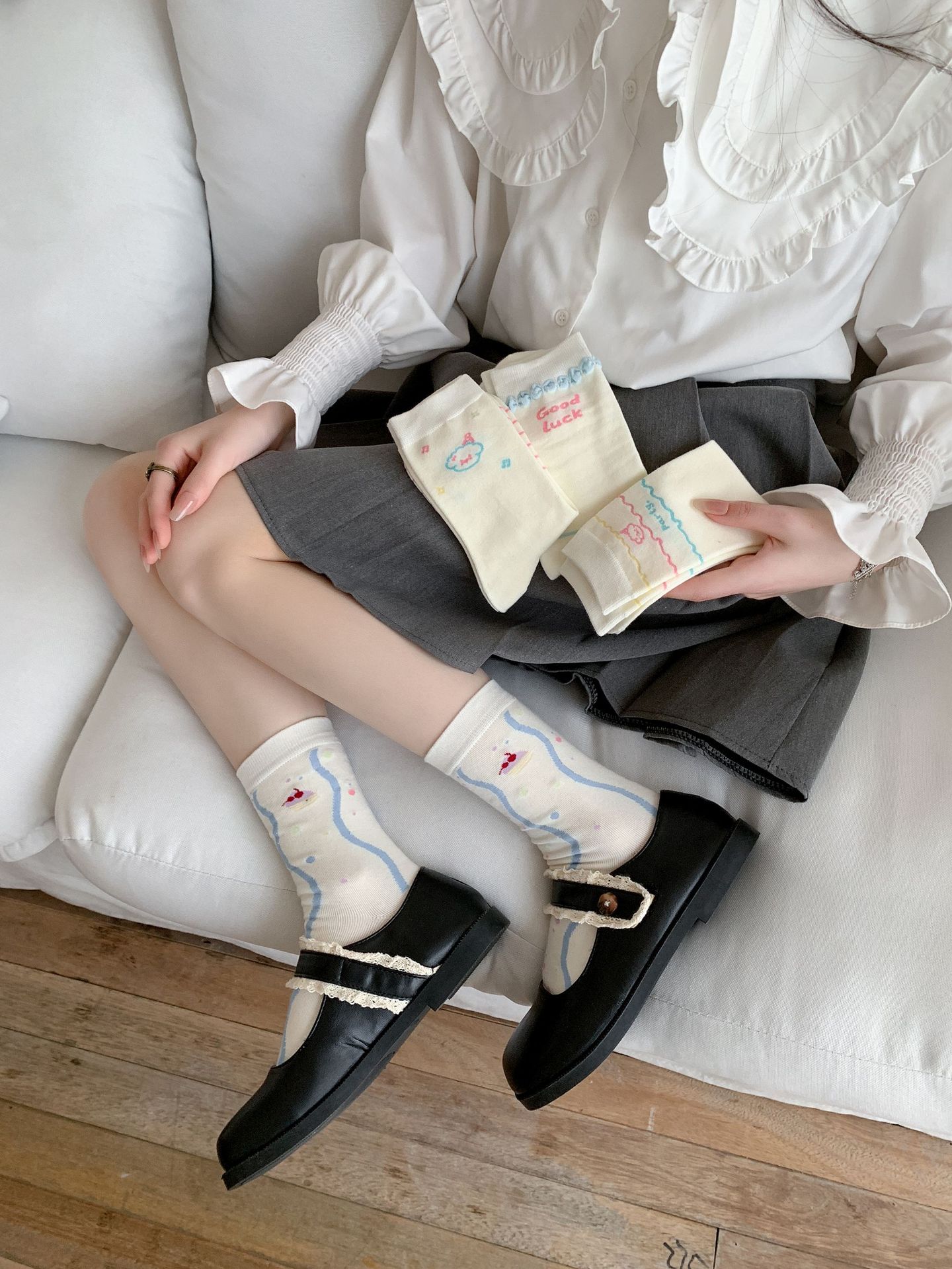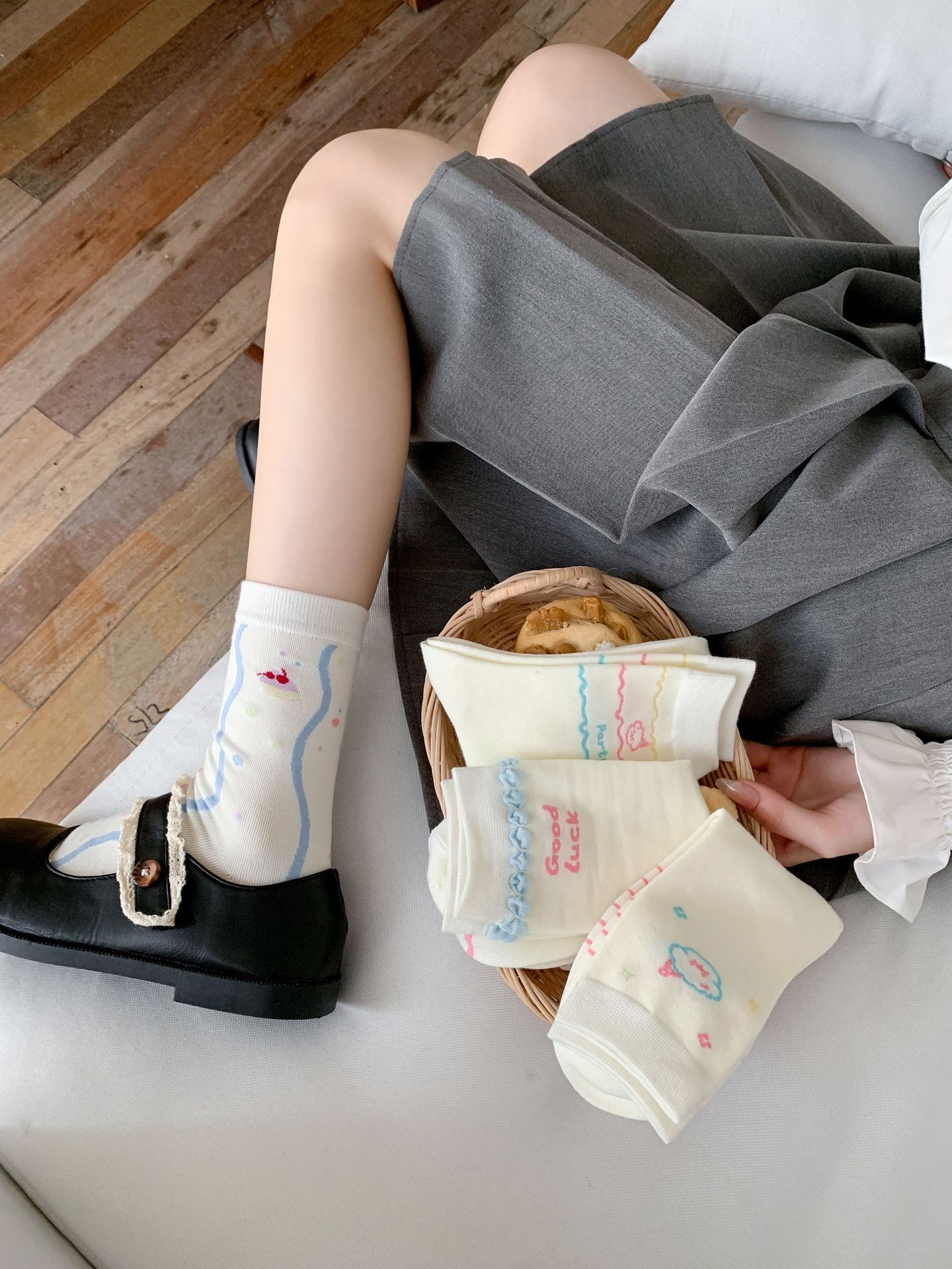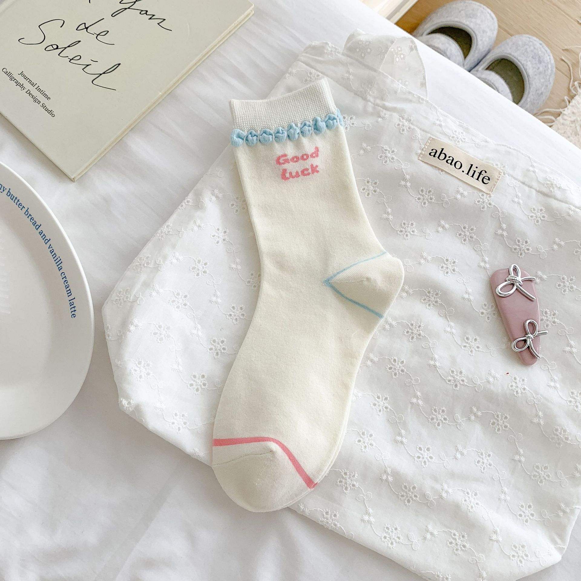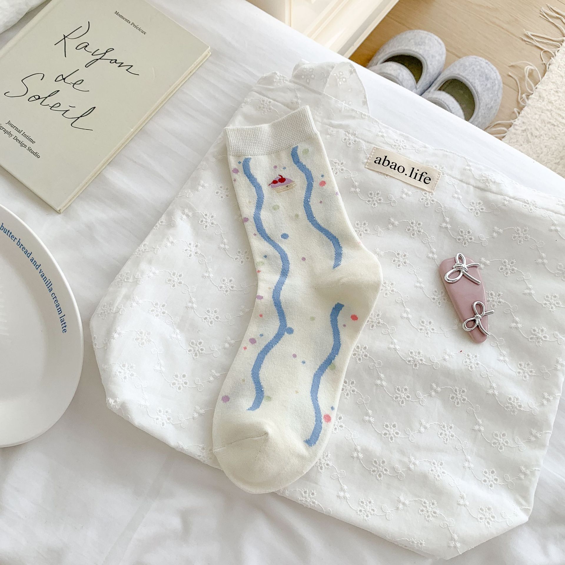 귀여운 양말 여성용 종아리 중간 양말 여름 흰색 파일 양말 도파민 버켄스탁 신발 2025 새로운 핫 스타일 긴 양말스토어 가기