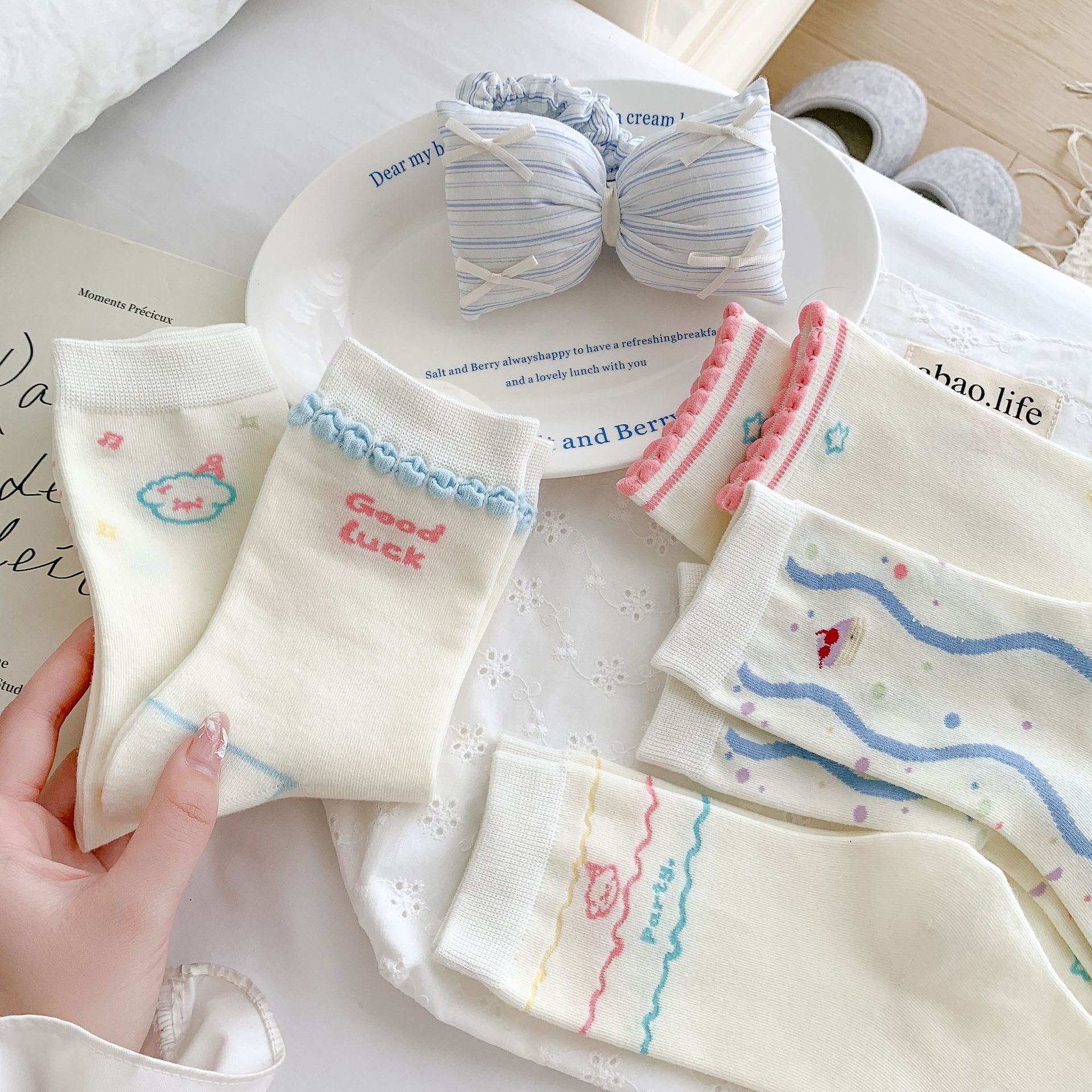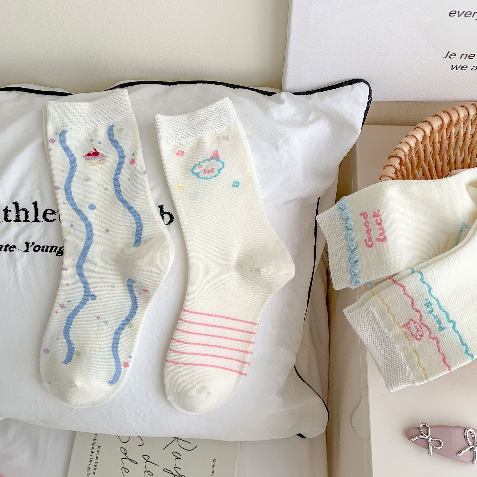 귀여운 양말 여성용 종아리 중간 양말 여름 흰색 파일 양말 도파민 버켄스탁 신발 2025 새로운 핫 스타일 긴 양말