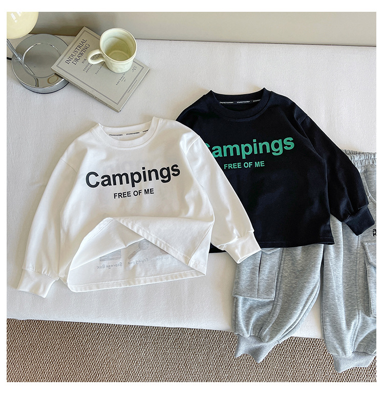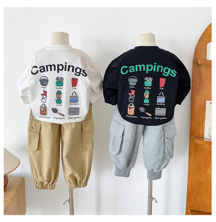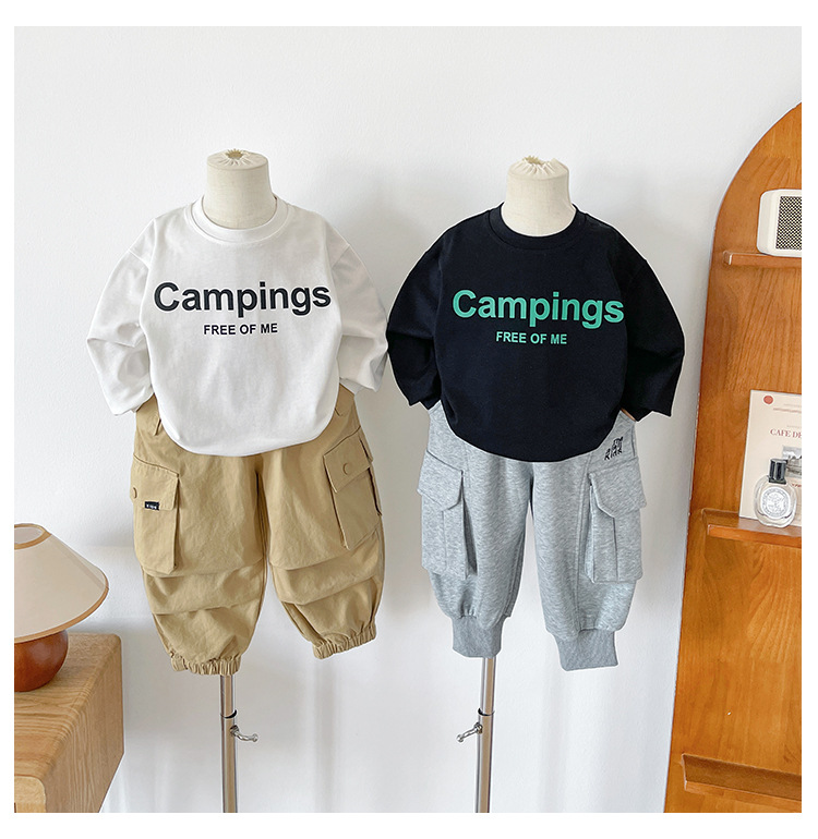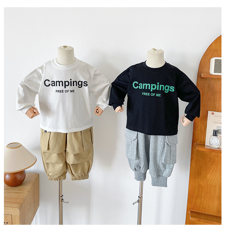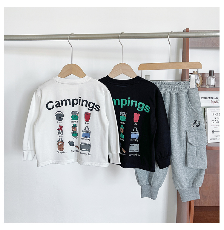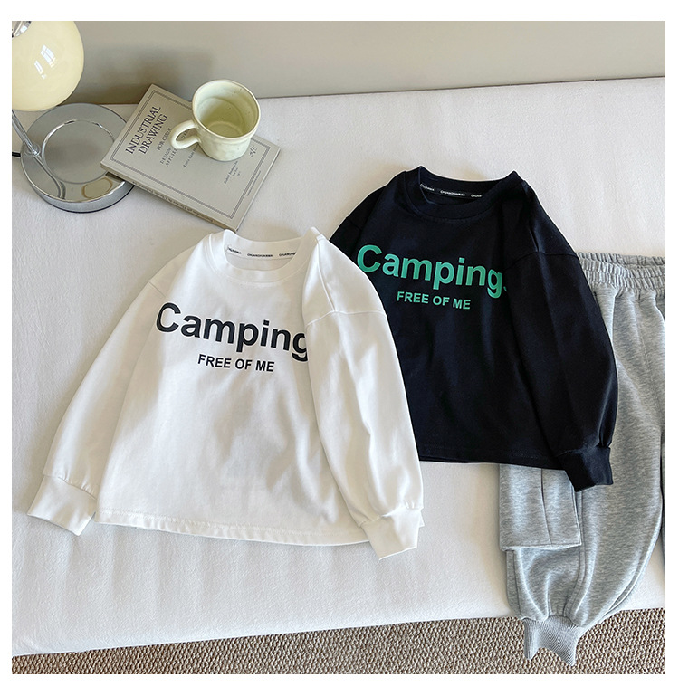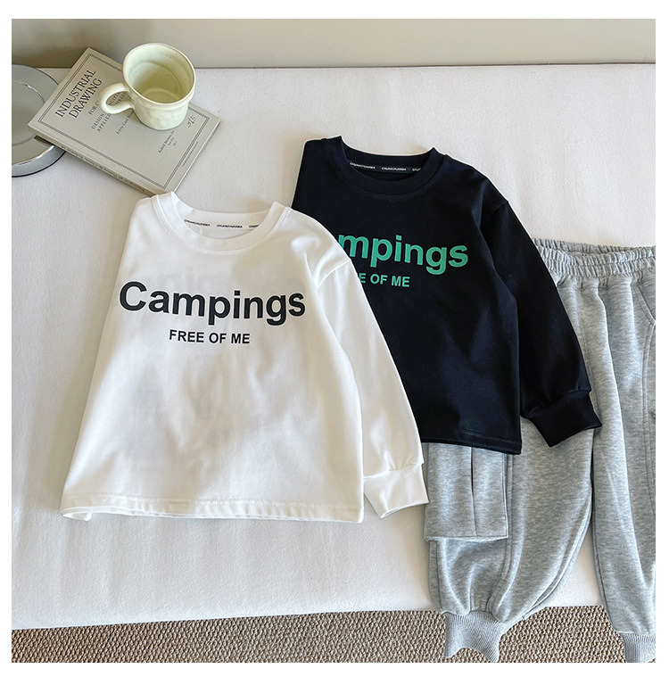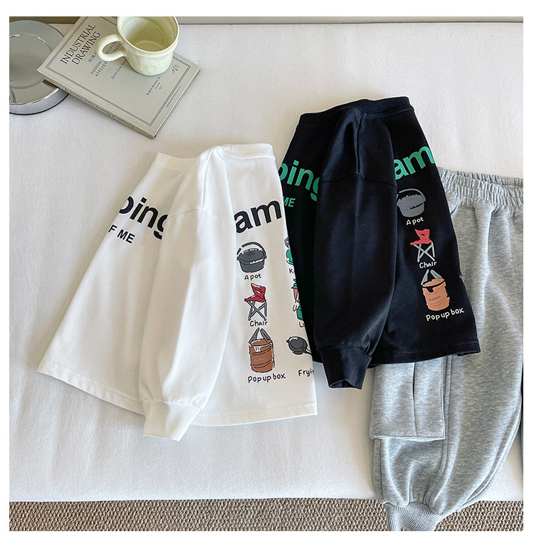 바람의 계곡 2025 새로운 가을 아동복 아동 한국어 만화 프린트 티셔츠 소년 소녀용 다용도 문자 바닥스토어 가기