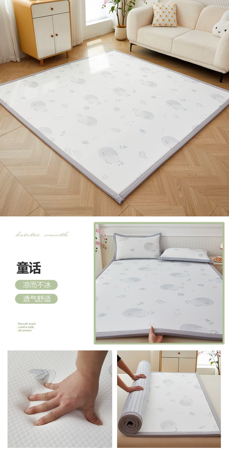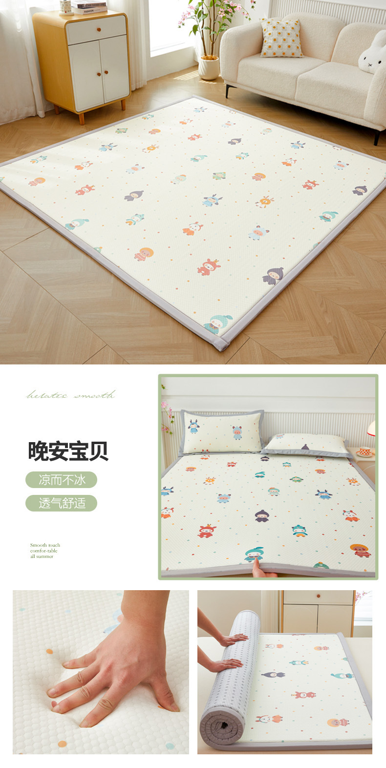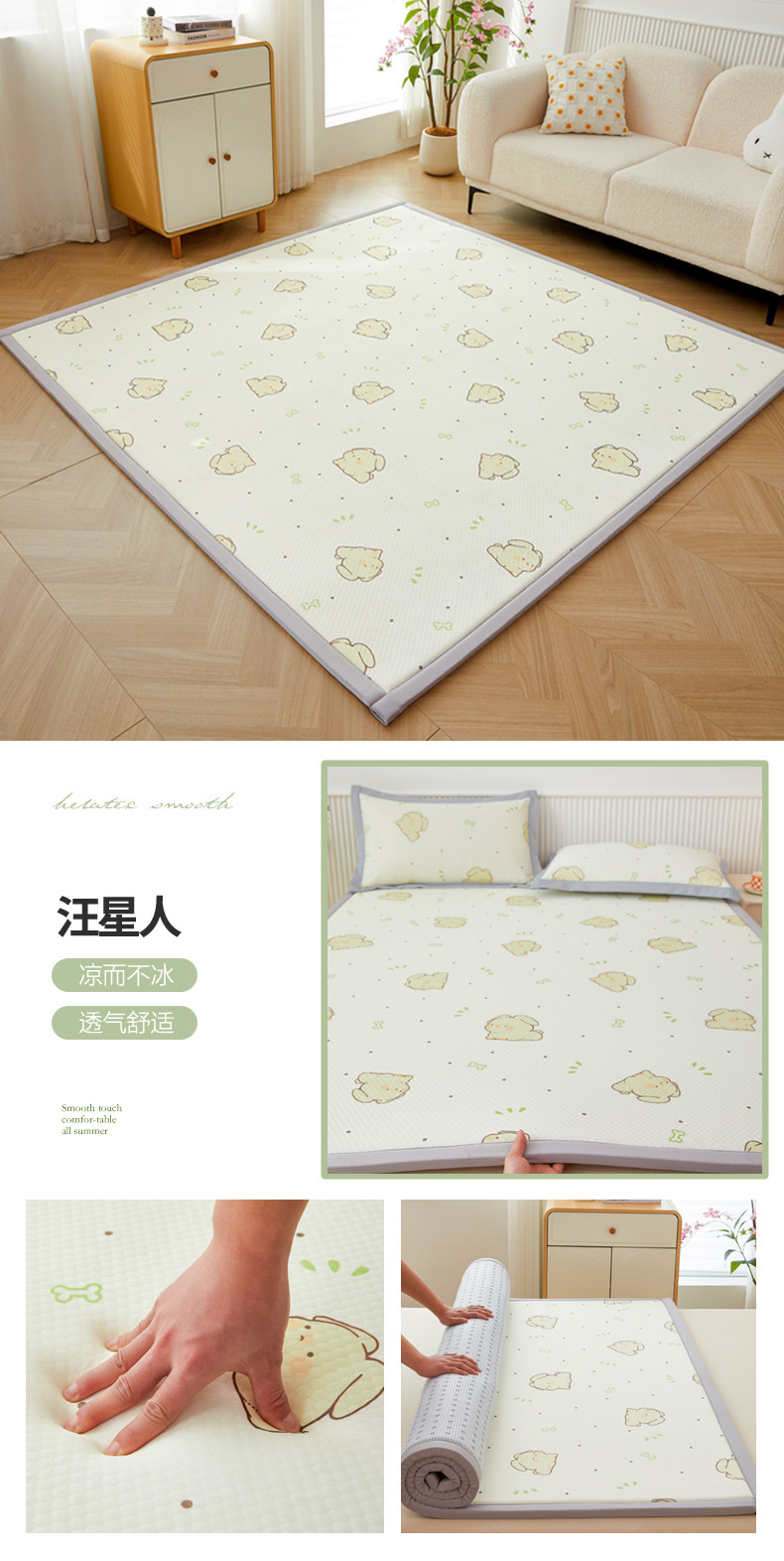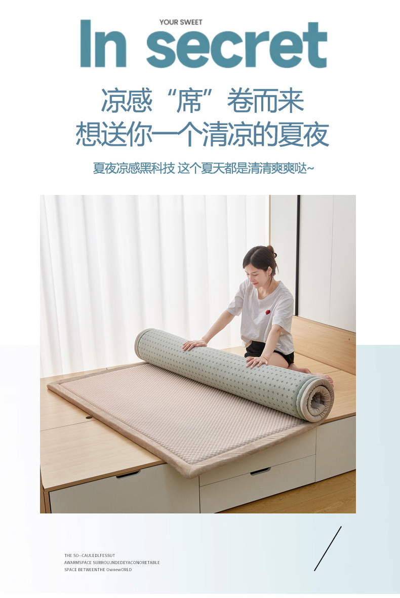 日式榻榻米垫子土炕垫夏季冰豆豆席儿童爬爬垫防滑海绵软床垫打地铺睡垫可折叠客厅卧室飘窗加厚地垫铺垫凉席工厂家定制跨境专供Summer thick sponge floor mat can be customized