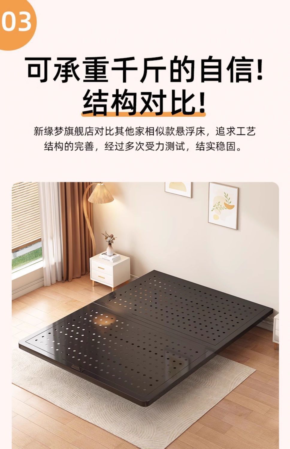 • (크림 화이트) 탄소강 프레임 침대