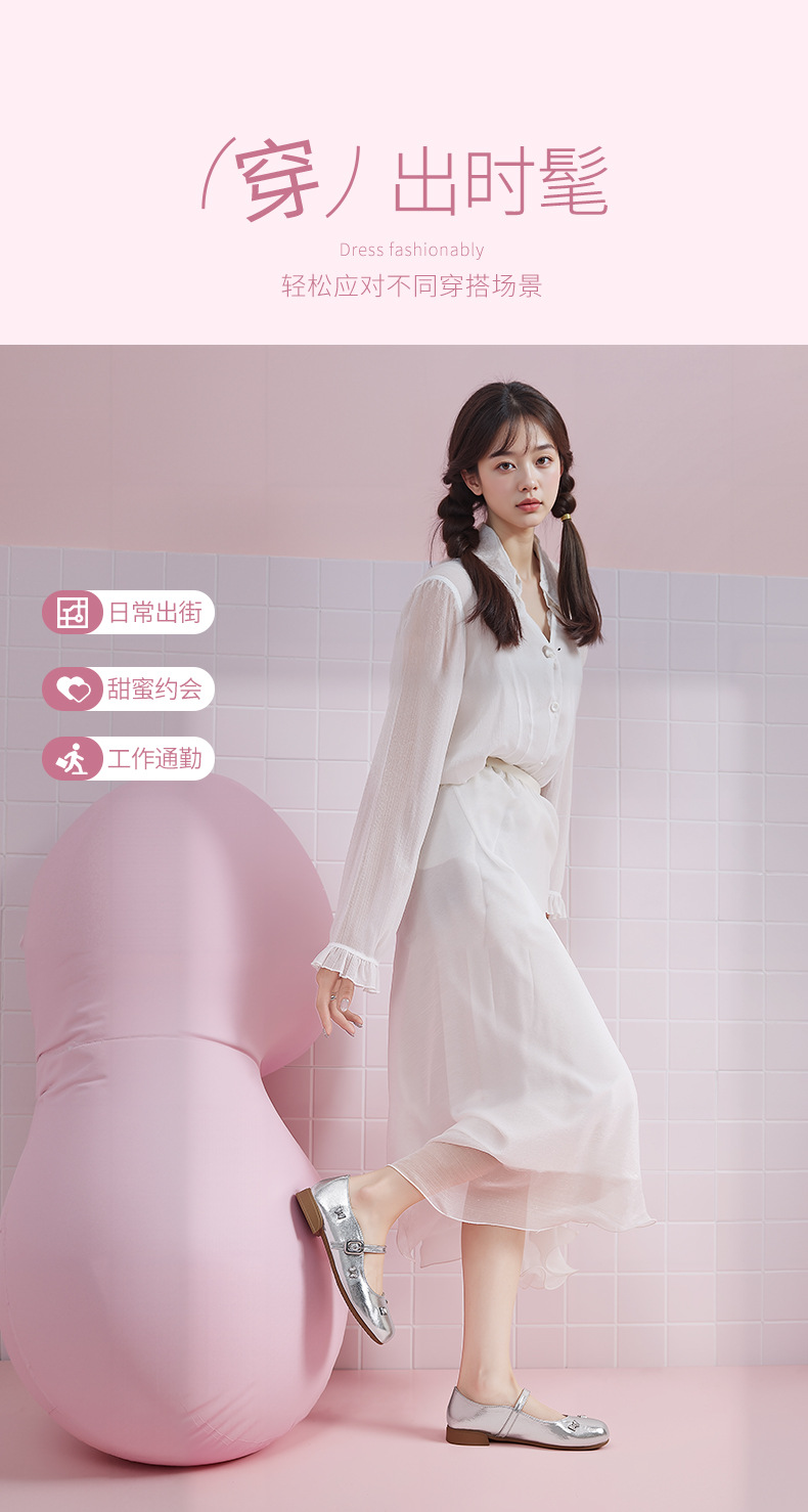 Augushiden 실버 메리 제인 신발 2025 신상 여름 프렌치 두꺼운 굽, 스커트와 함께 신으면 피곤하지 않은 아름다운 신발스토어 가기