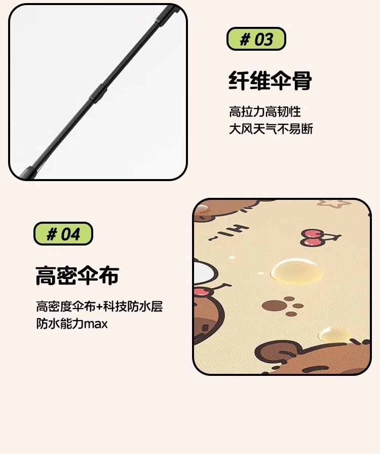 • 해피 팬더 [자동 수집] 유리 섬유 방풍 우산 갈비 - 높은 자외선 차단
