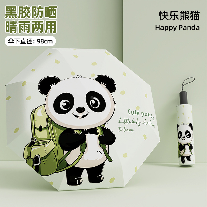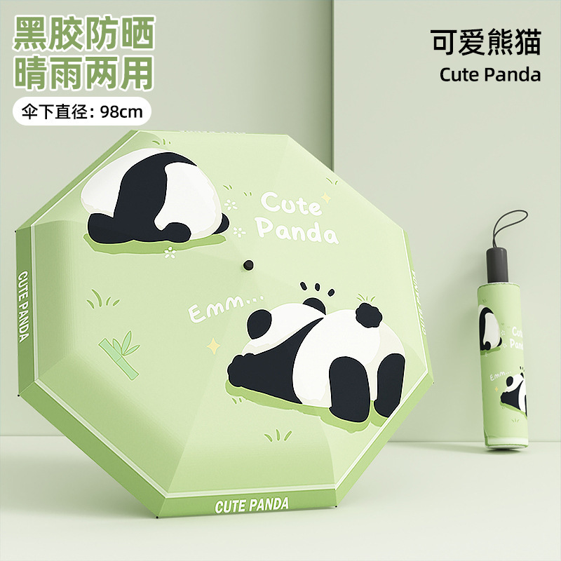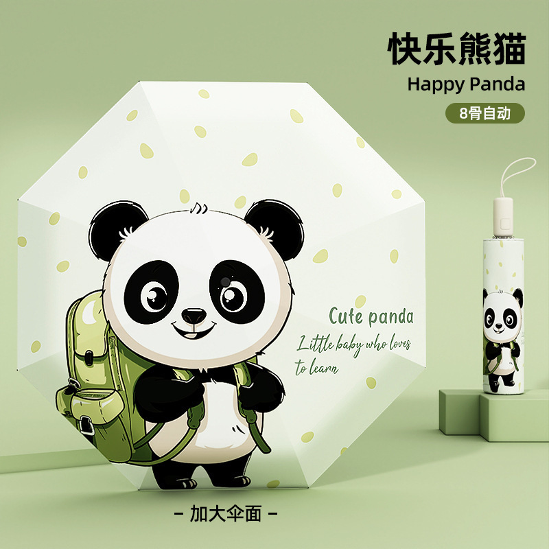 • 귀여운 팬더 [자동 수집] 유리 섬유 방풍 우산 갈비 - 높은 자외선 차단