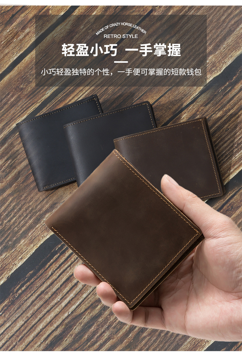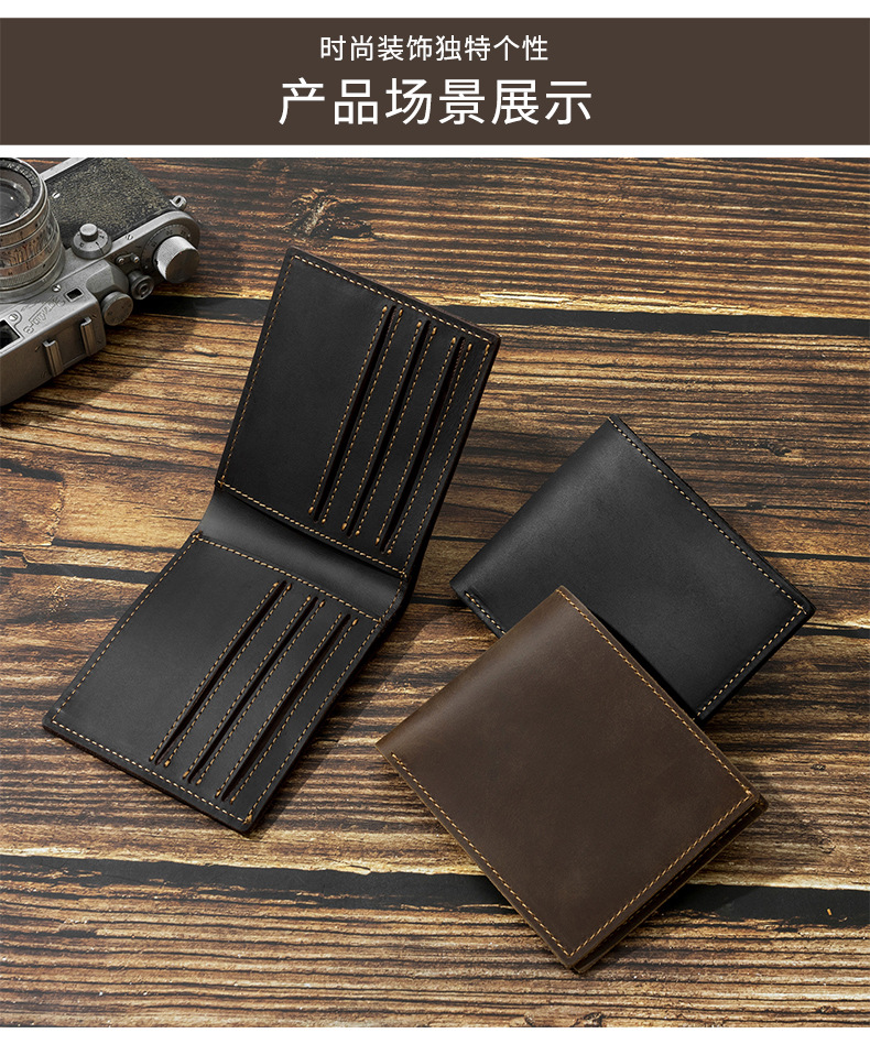 여러 카드 슬롯이 있는 크로스보더 남성용 정품 가죽 지갑, 캐주얼 복고풍 크레이지 호스 가죽 짧은 지갑 80% off 비즈니스 카드 홀더 지갑스토어 가기