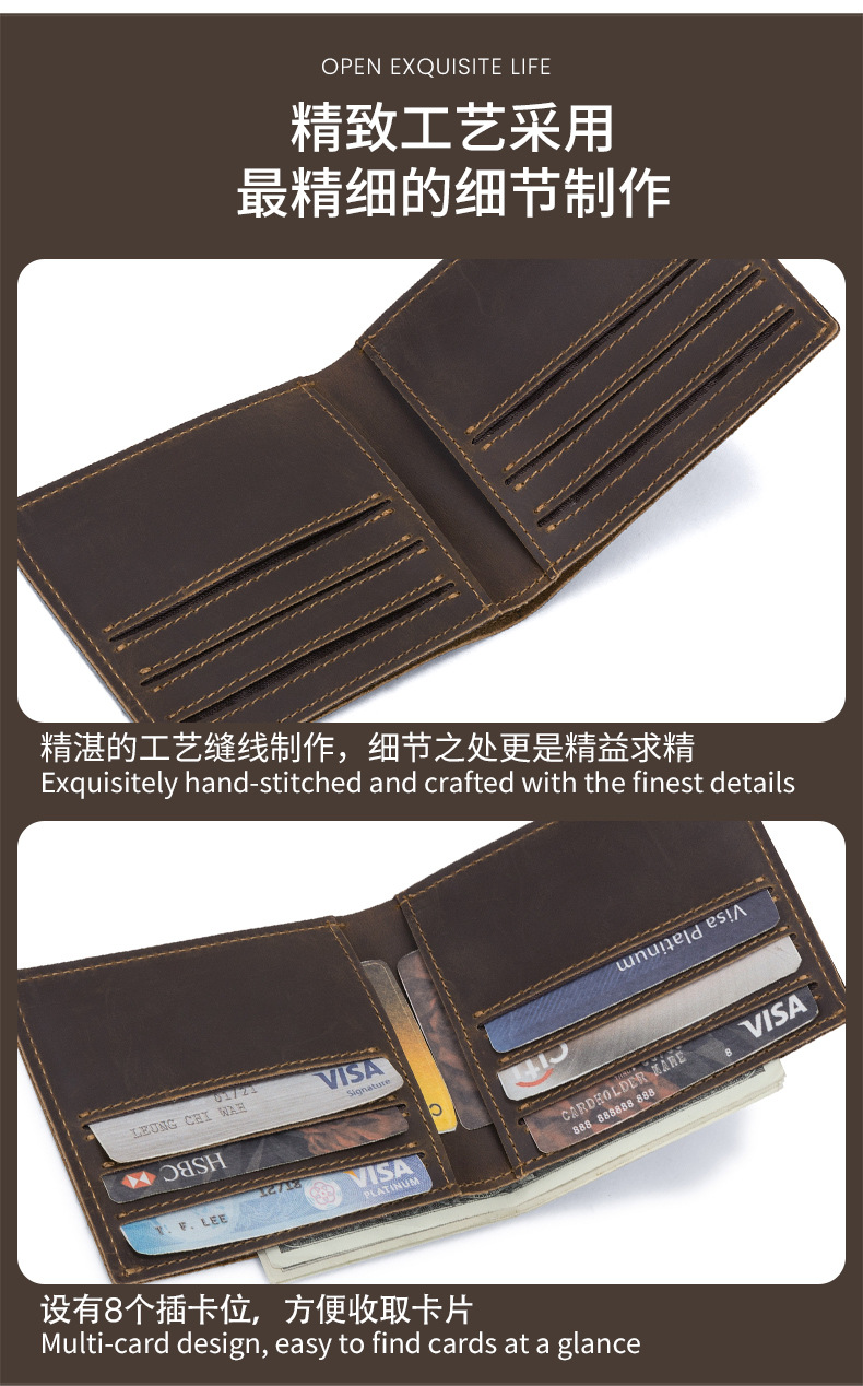 여러 카드 슬롯이 있는 크로스보더 남성용 정품 가죽 지갑, 캐주얼 복고풍 크레이지 호스 가죽 짧은 지갑 80% off 비즈니스 카드 홀더 지갑