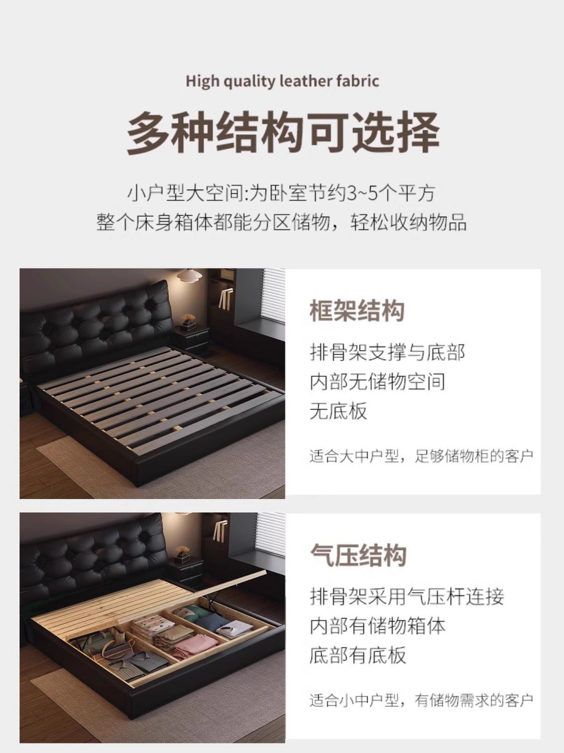 새로운 대형 검은 곰 프랑스 가죽 침대 현대 간단한 침실 더블 스토리지 웨딩 라이트 럭셔리 이탈리아 부드러운 가방 침대스토어 가기