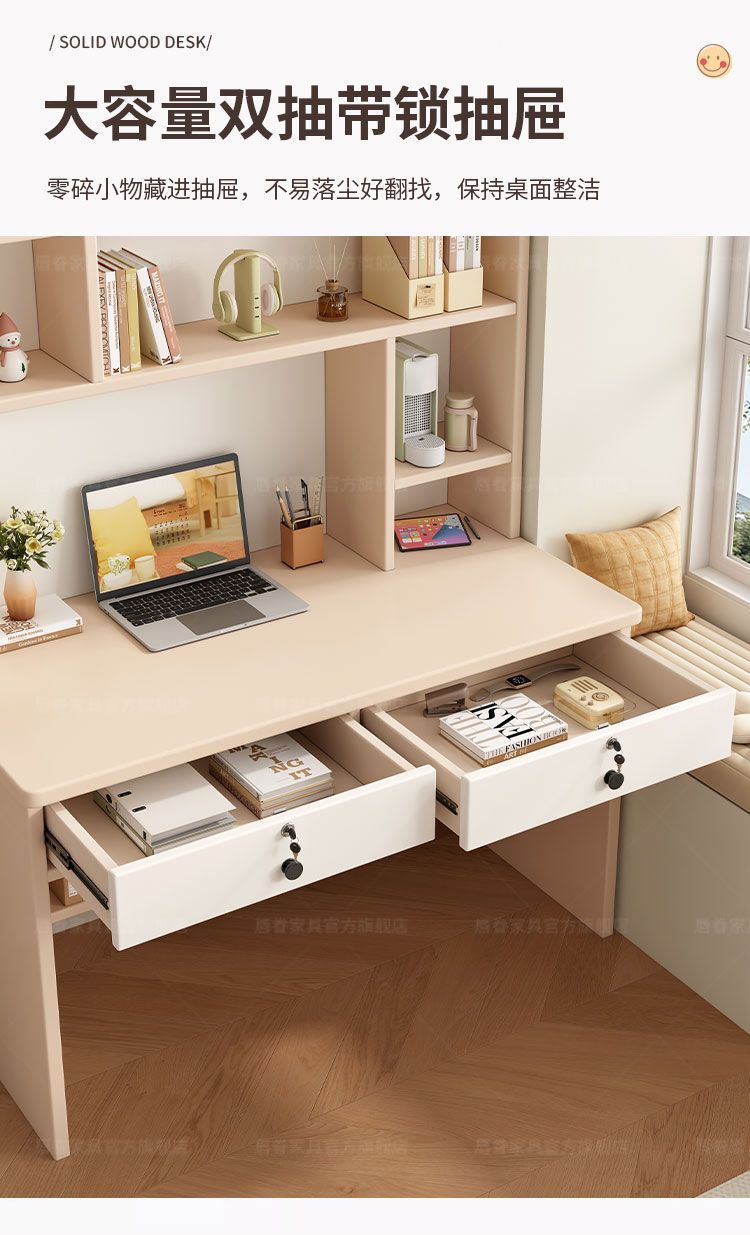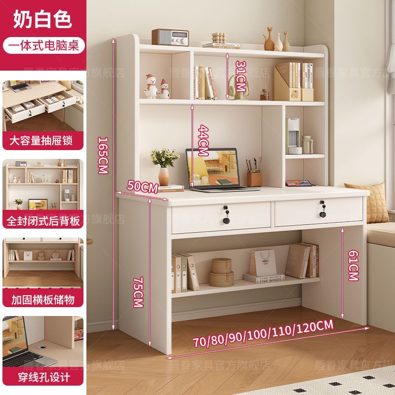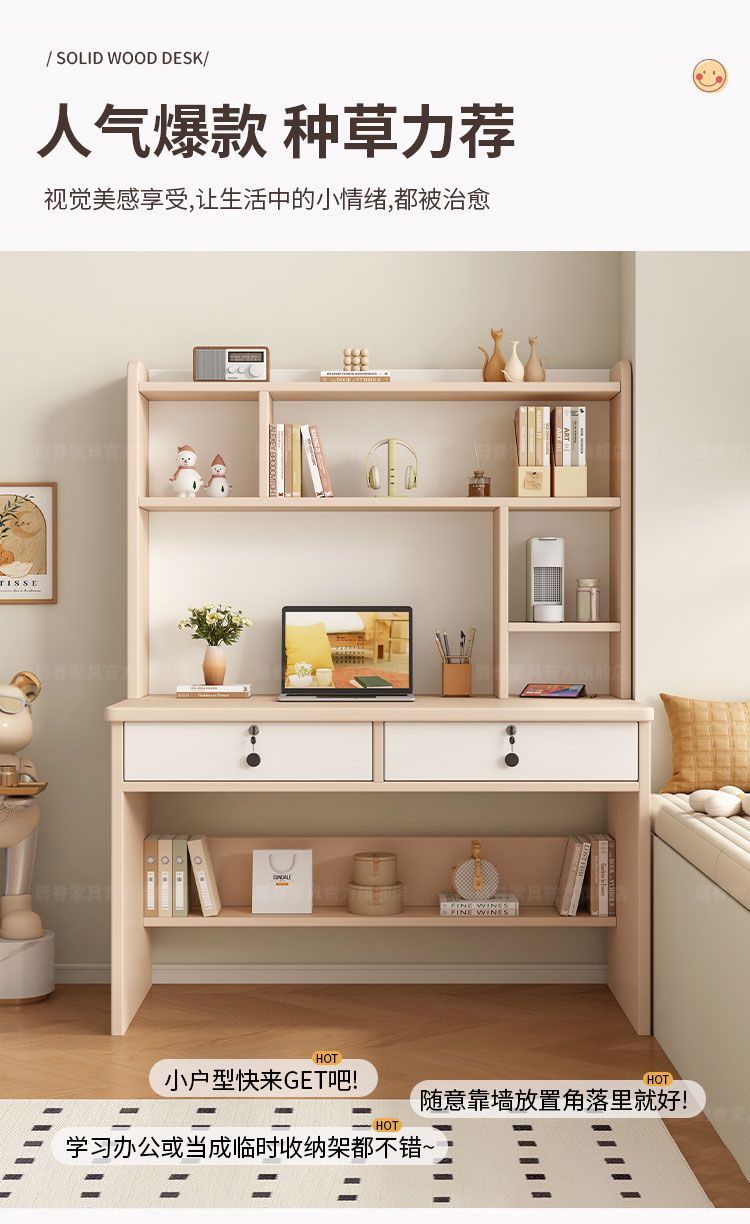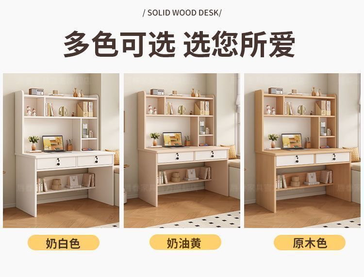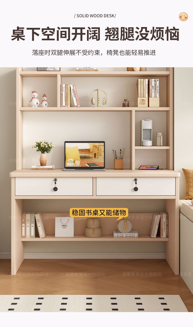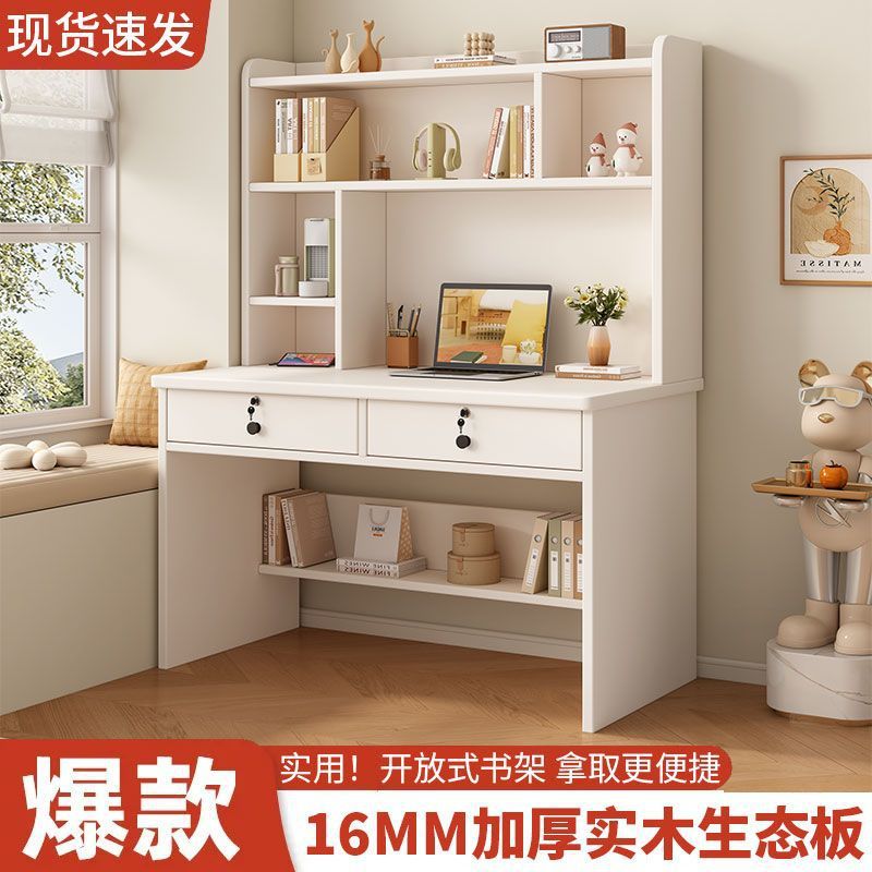 단단한 나무 생태 책상 책장 조합 홈 더블 컴퓨터 책상 데스크탑 책장 간단한 사무실 학생 침실 테이블