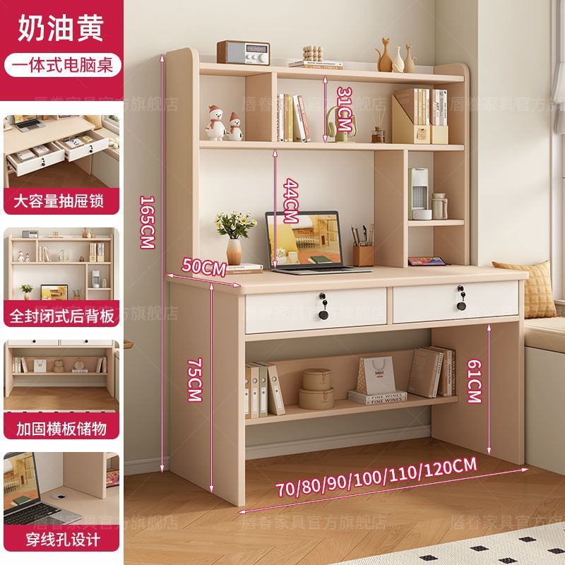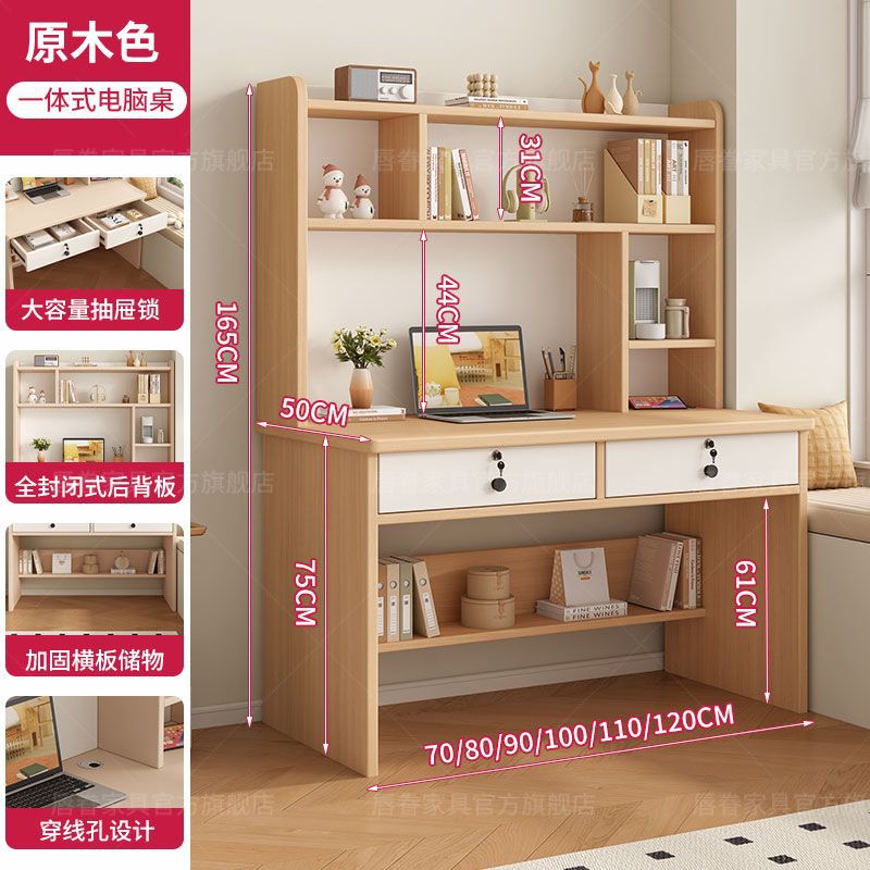 단단한 나무 생태 책상 책장 조합 홈 더블 컴퓨터 책상 데스크탑 책장 간단한 사무실 학생 침실 테이블스토어 가기