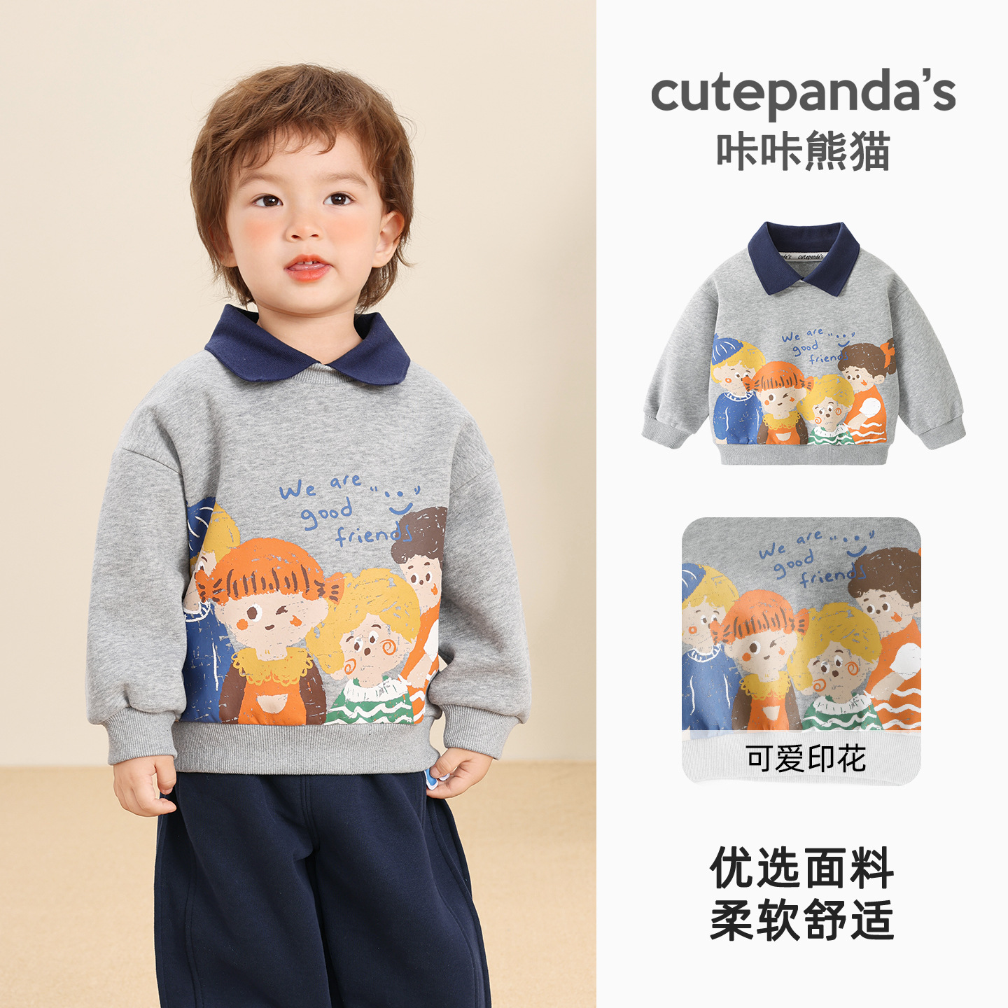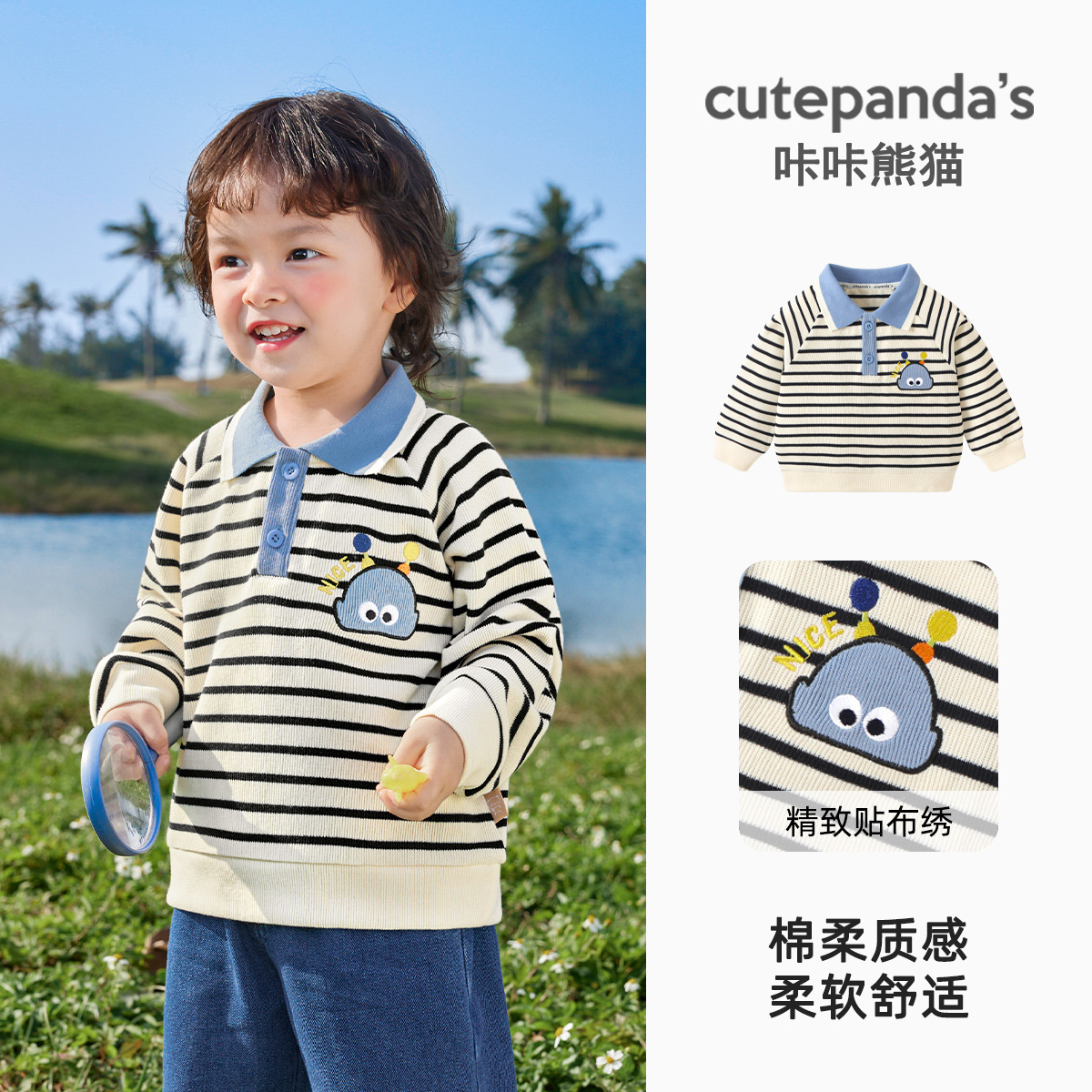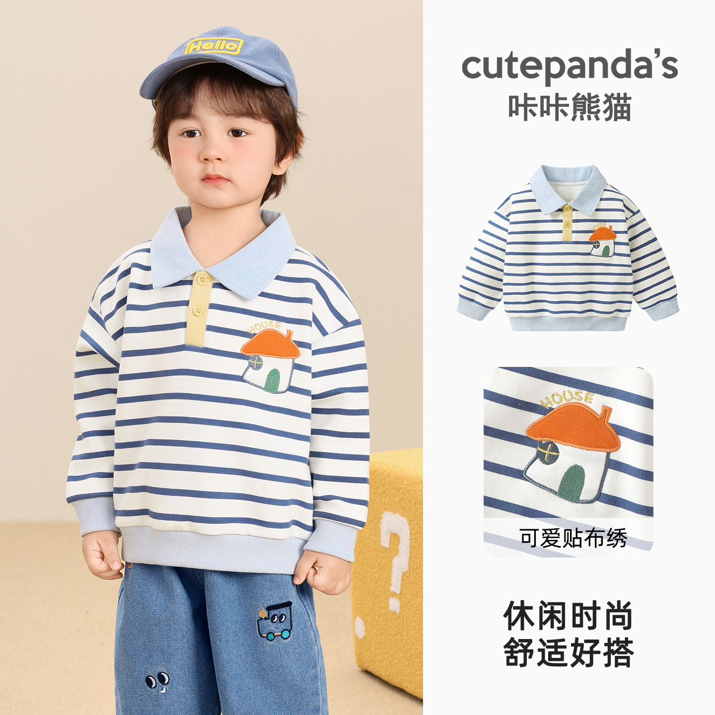 카카 팬더 남아 캐주얼 라펠 스웨트셔츠 여아 봄옷 유아 봄 상의 봄가을 아동복스토어 가기