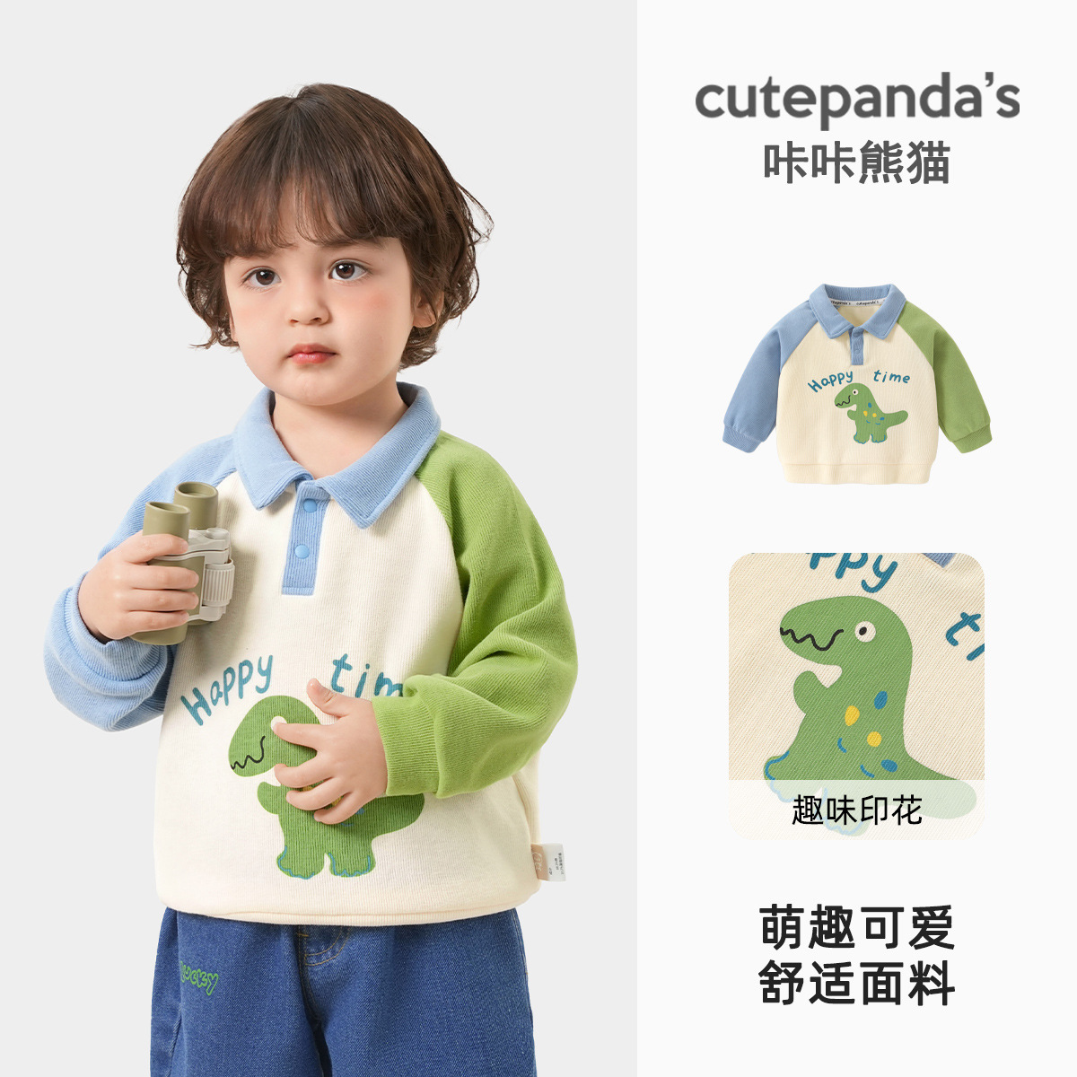 카카 팬더 남아 캐주얼 라펠 스웨트셔츠 여아 봄옷 유아 봄 상의 봄가을 아동복