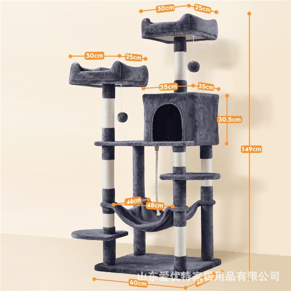 둥지와 고양이 점프 플랫폼이 모두 포함된 대형 캣타워, 사계절용 수직형, 공간을 차지하지 않는 고급 고양이 클라이밍 프레임, 대외 무역 고양이 빌라