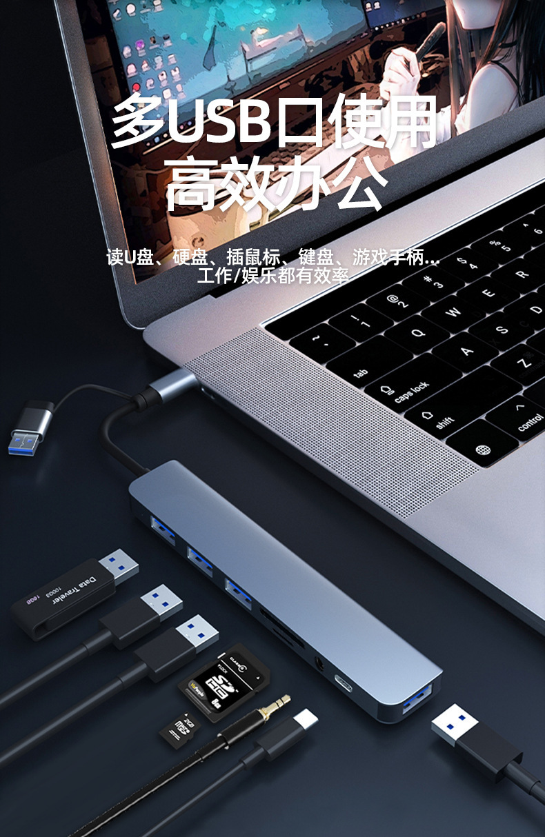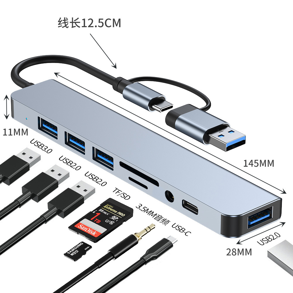 8-in-1 도킹 스테이션 usb3.0 도킹 스테이션 TF/SD 카드 리더기 노트북 도킹 스테이션 usb 허브스토어 가기