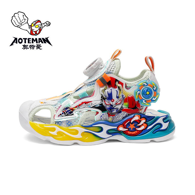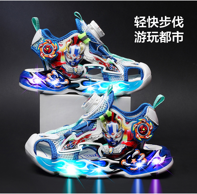 엄선된 울트라맨 남아용 발가락 샌들, 남아용 야광 신발, 어린이 회전 버튼 캠퍼스 캐주얼 비치 슈즈