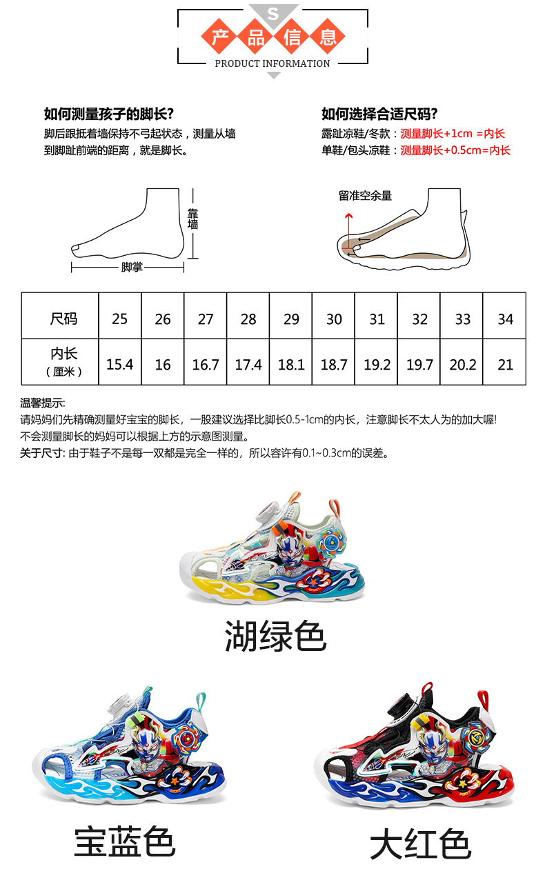 엄선된 울트라맨 남아용 발가락 샌들, 남아용 야광 신발, 어린이 회전 버튼 캠퍼스 캐주얼 비치 슈즈스토어 가기