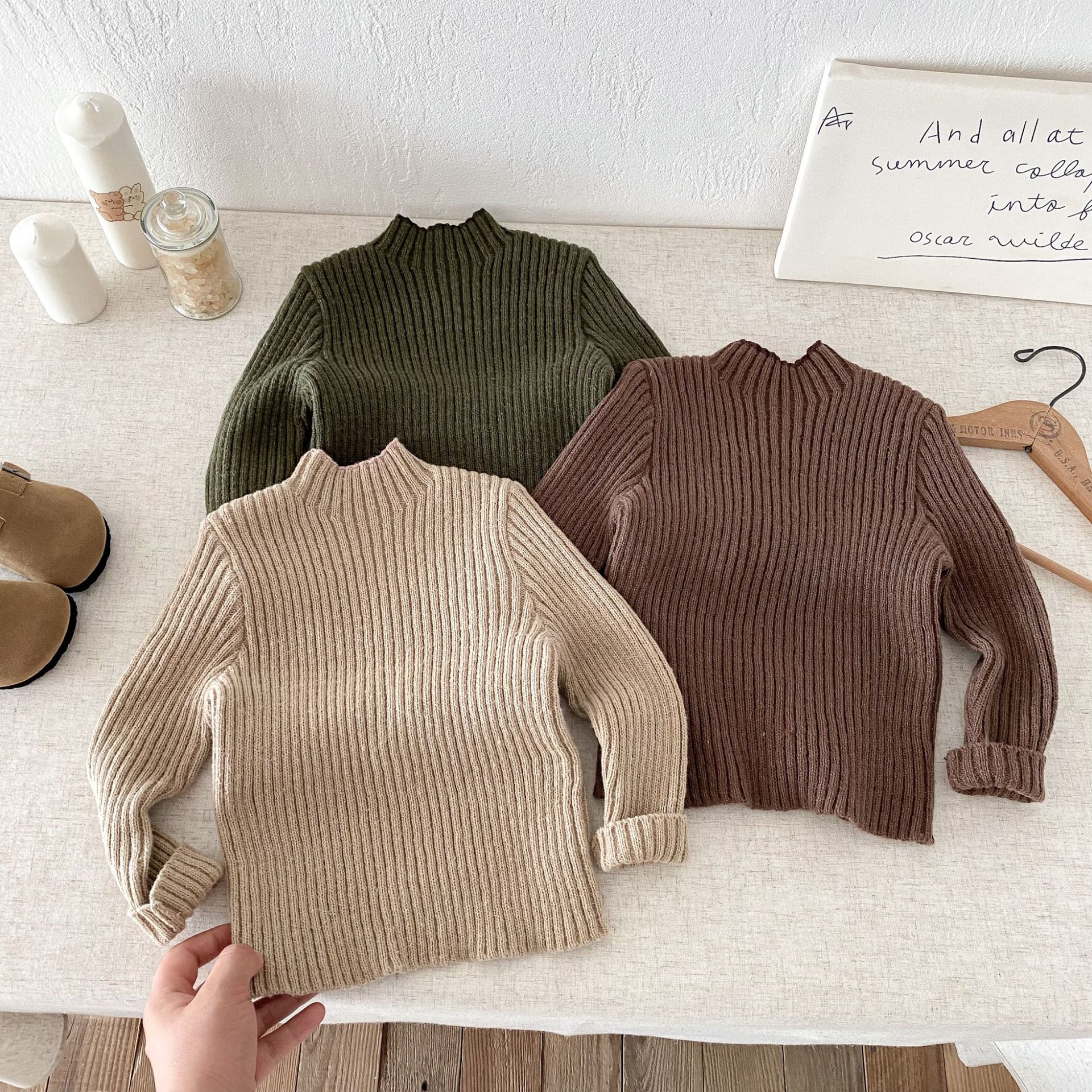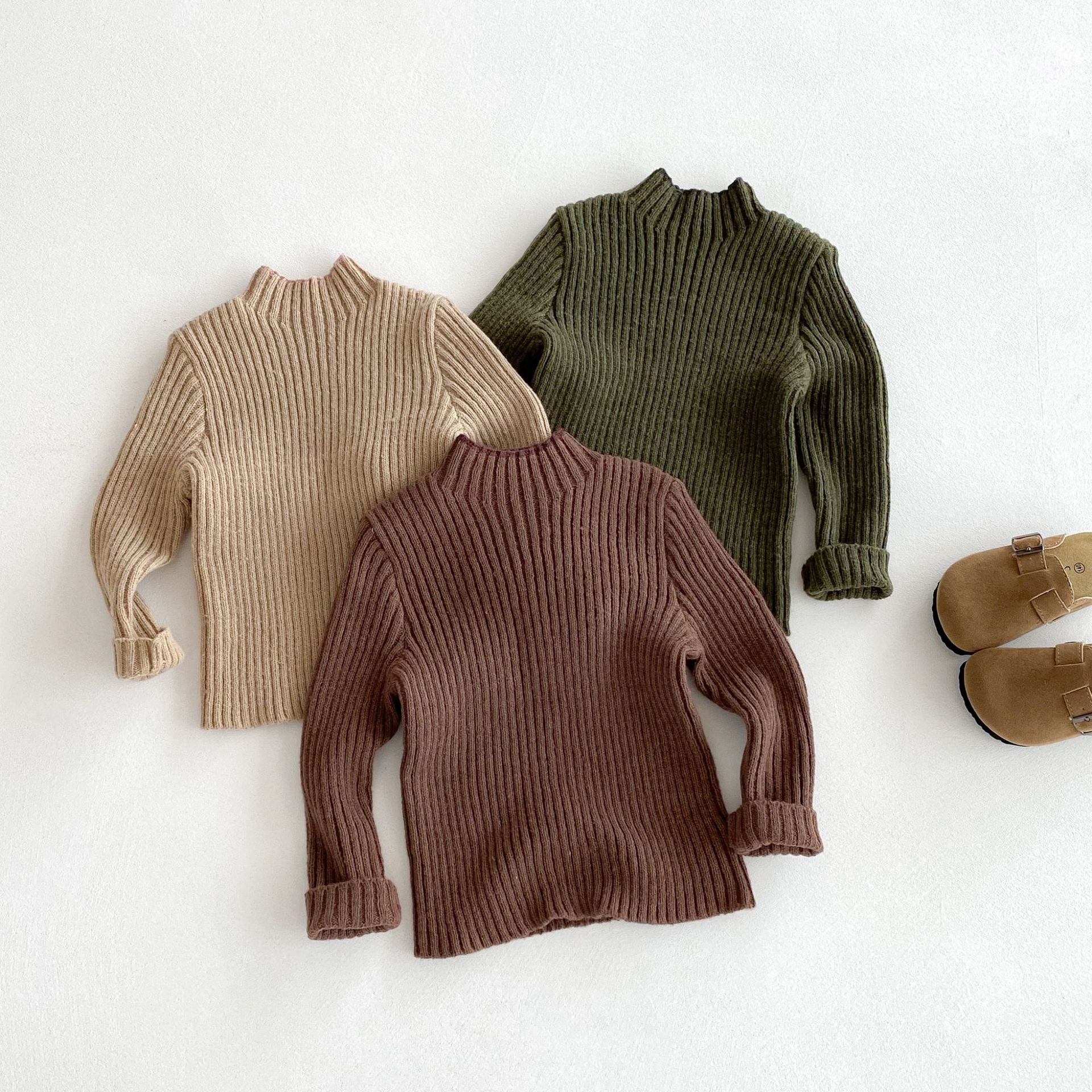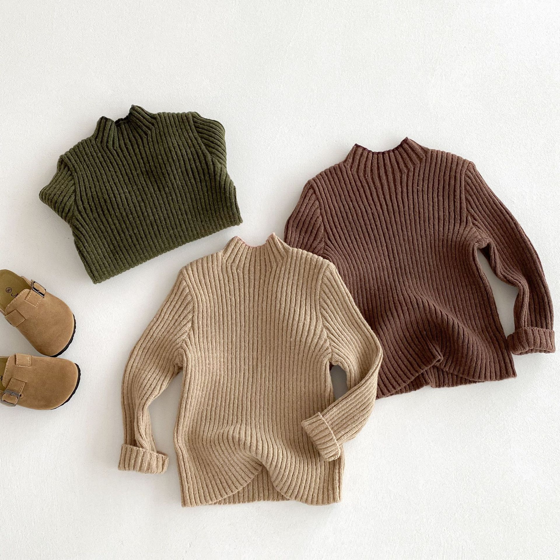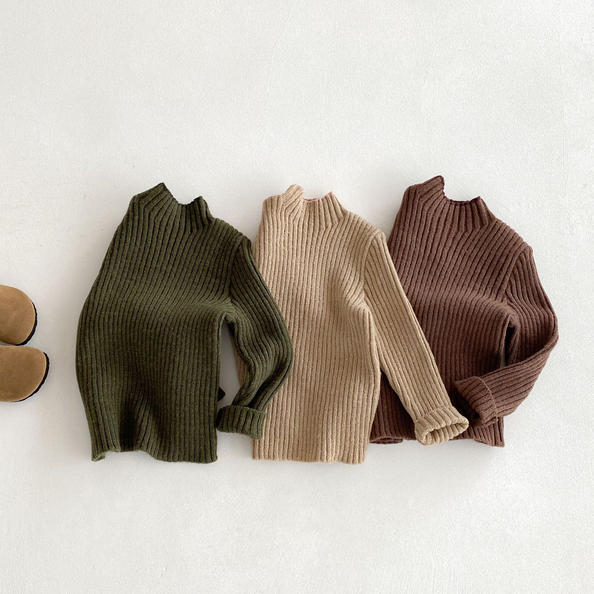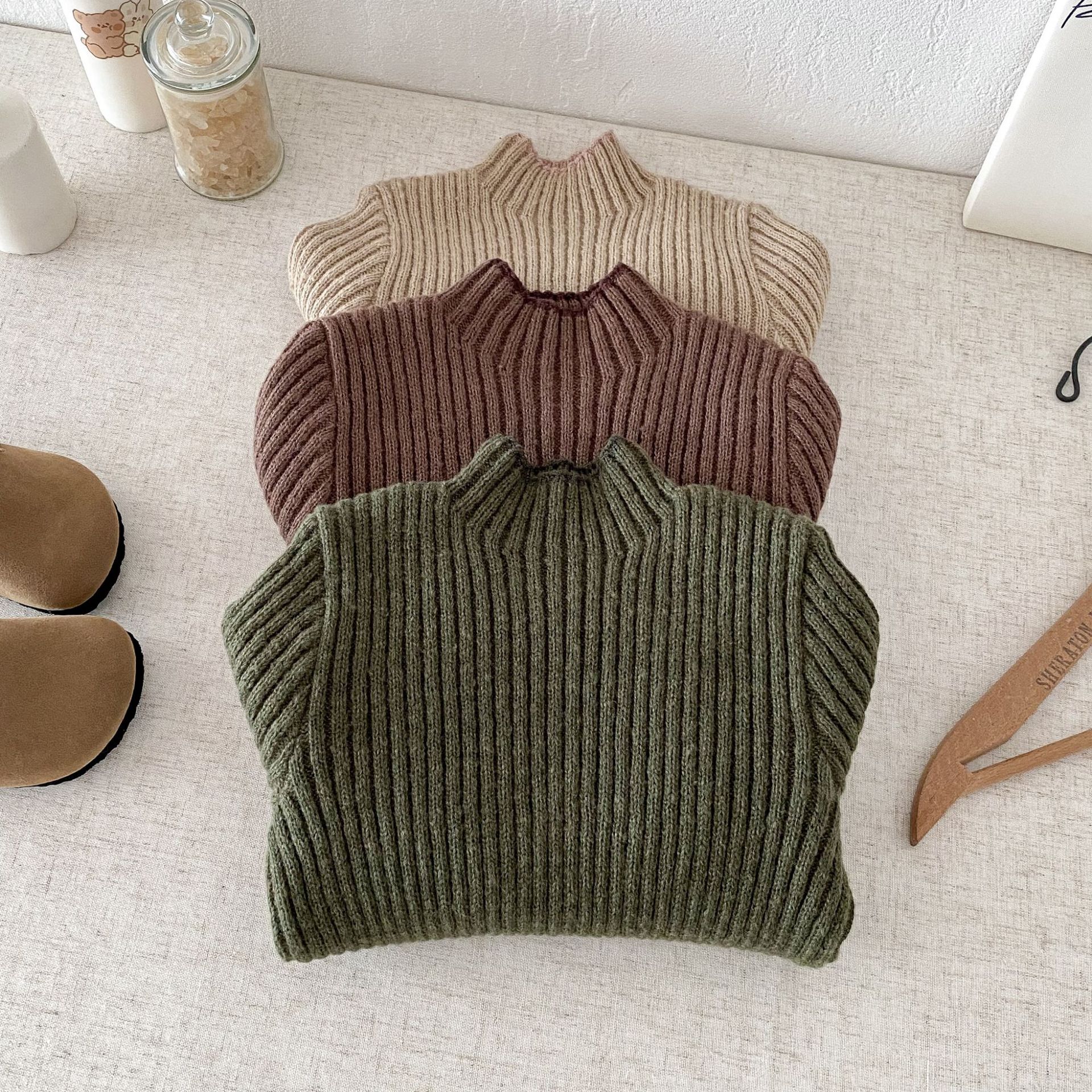 아동복 한국식 아동 피부 친화적인 스트레치 하프 터틀넥 스웨터 남녀 아기 슬림 가을 겨울 니트 바닥 셔츠스토어 가기