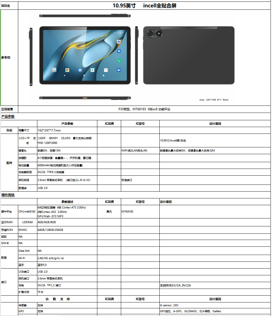 2025년 새로운 10.95inch 태블릿 인셀 풀 라미네이션 2K HD 스크린 T616F11 학습 기계