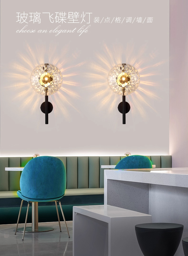 현대적인 미니멀리스트 물결무늬 유리 벽등 북유럽 거실 배경벽 침실 서재 장식용 창의적인 조명기구 LED 램프스토어 가기