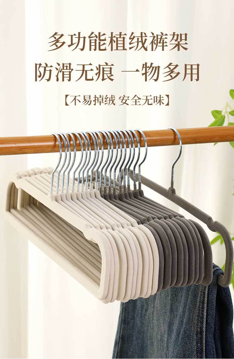 가정용 두꺼운 미끄럼 방지 옷 걸이를 위한 드롭 배송 플로킹 바지 걸이, 가정용 일일 보관 플로킹 옷 걸이 도매스토어 가기