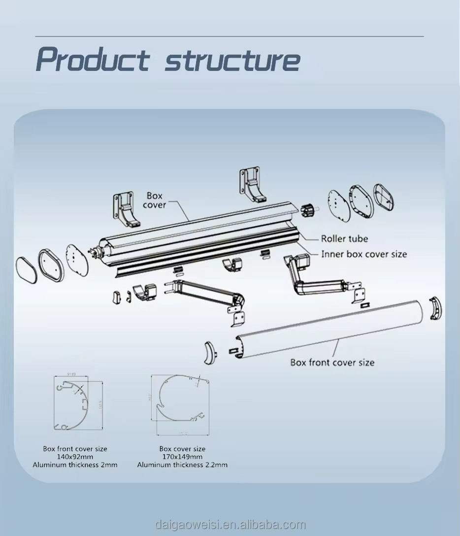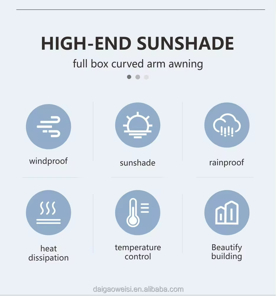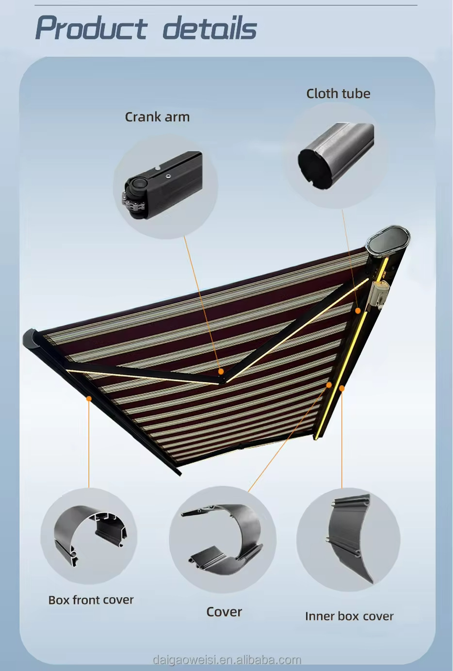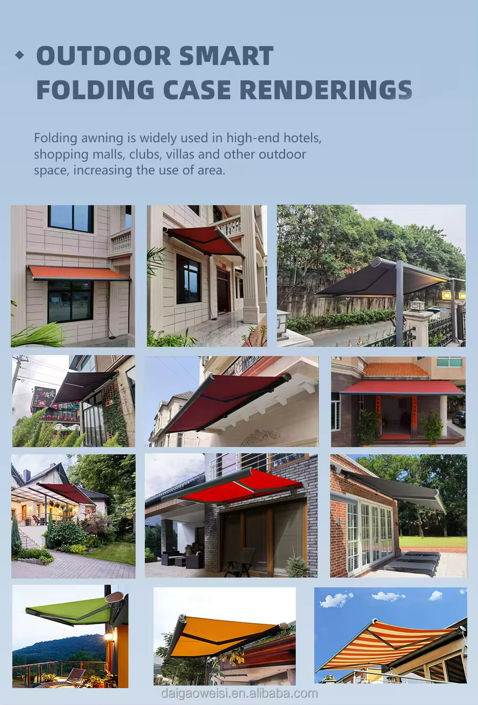 대외 무역 제조업체의 알루미늄 풀 박스형 개폐식 차양은 조명 차양을 갖을 수 있습니다. 빌라 레저용 차양스토어 가기