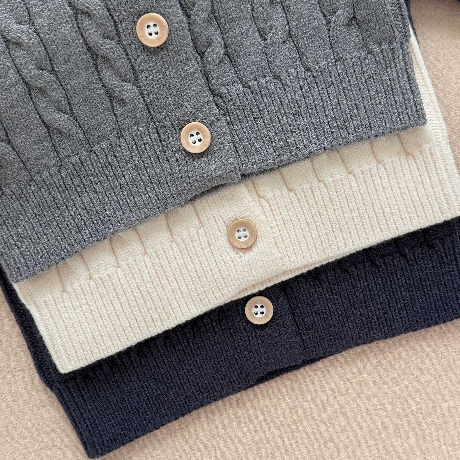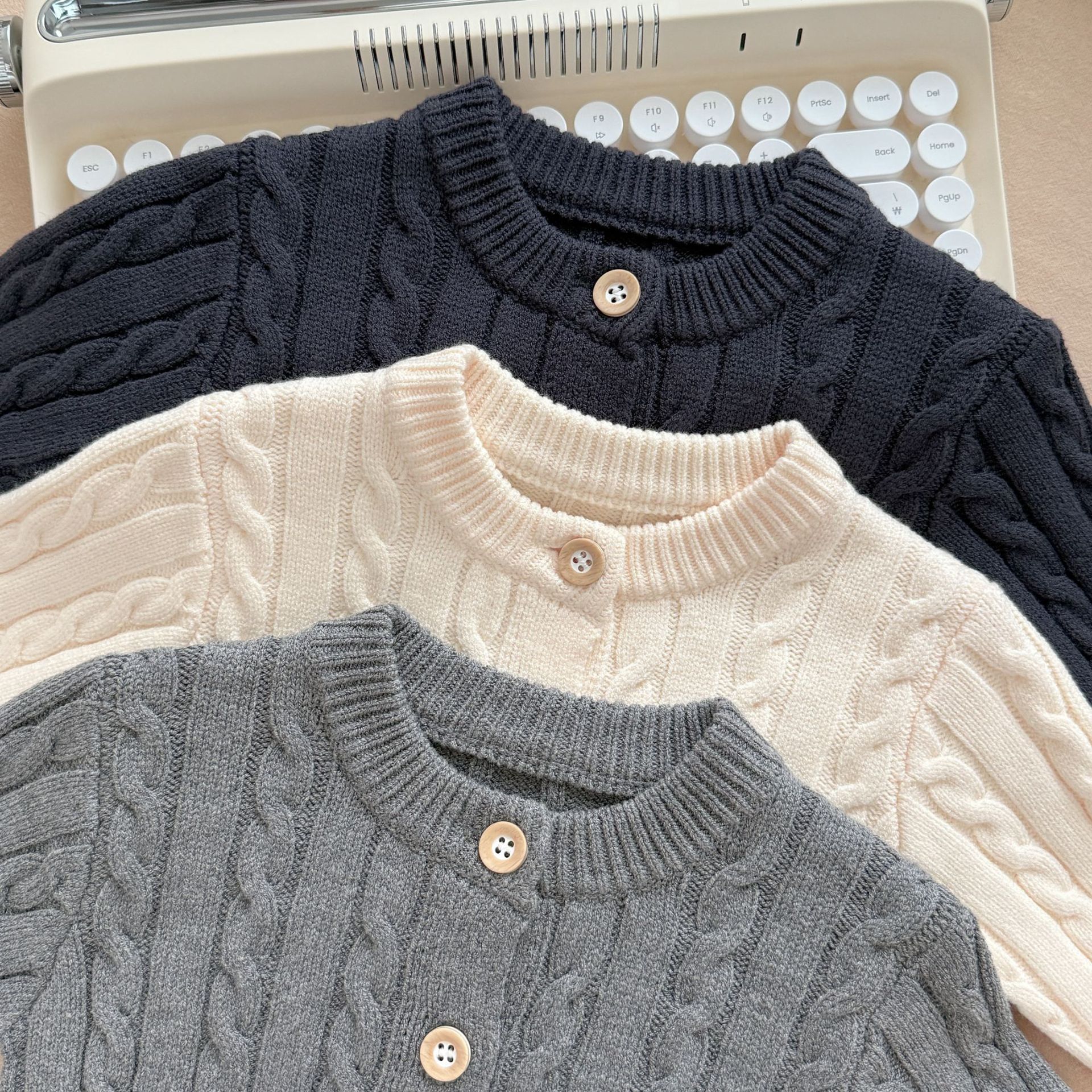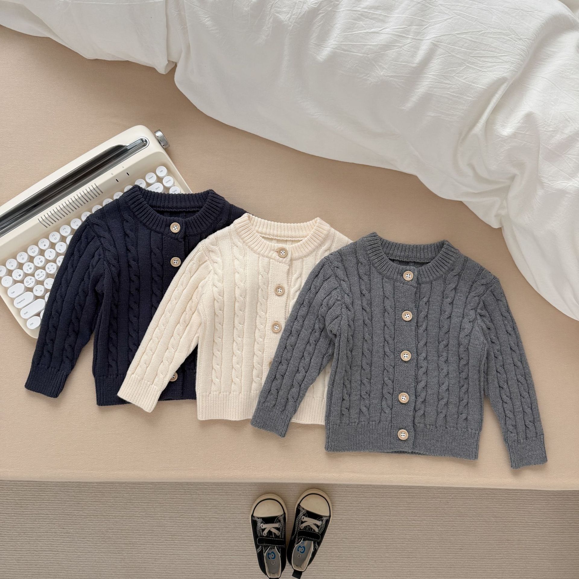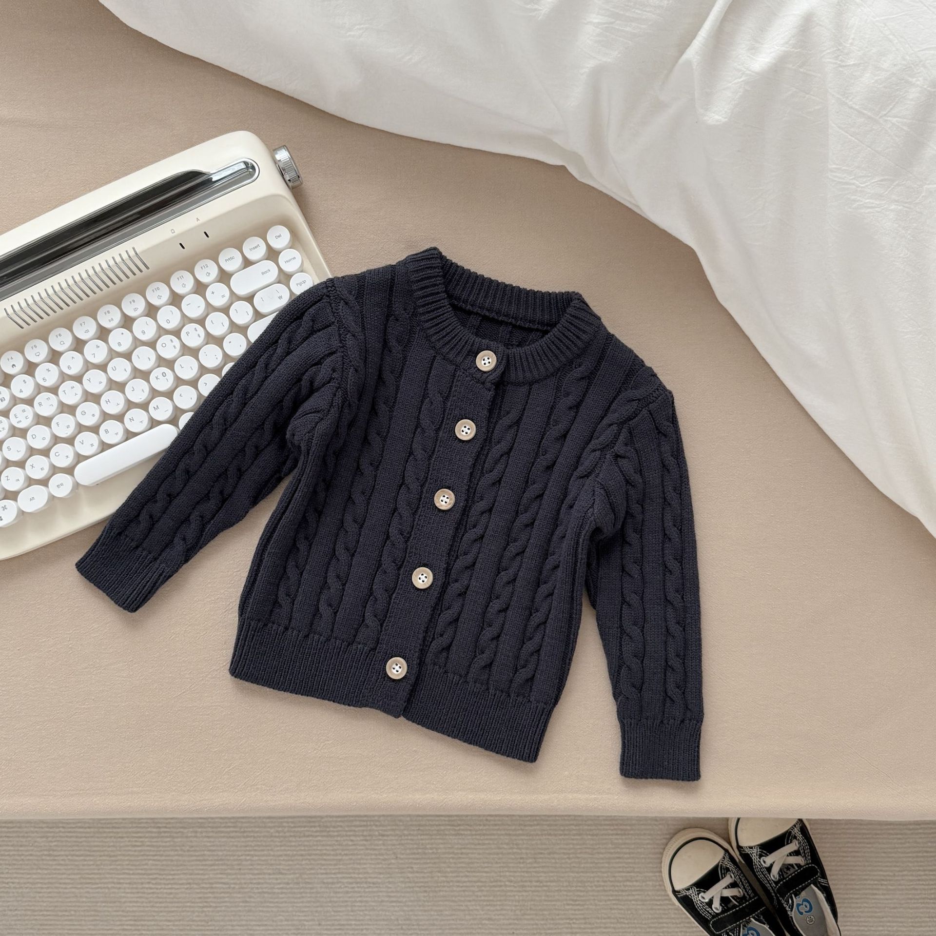 가을, 겨울 남아, 여아용 단색 긴팔 가디건, 라운드넥 니트 스웨터, 다용도 아우터, 아기 새해맞이 옷스토어 가기