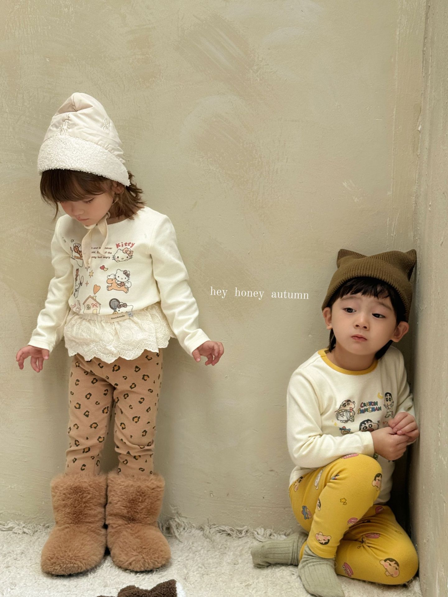 Hey Sweetheart Heyhoney25 울 풀업 코튼 소년 소녀 가을 옷 속옷 프린트 홈웨어 잠옷 투피스 세트