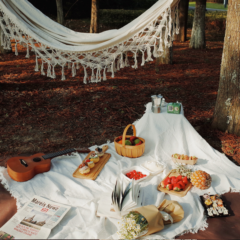 • 흰색 230*250(술 가장자리 포함) 6-8명이 함께 앉기에 적합