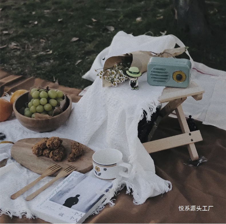 • 흰색 130*130(술 가장자리 포함) 2-3인이 앉기에 적합
