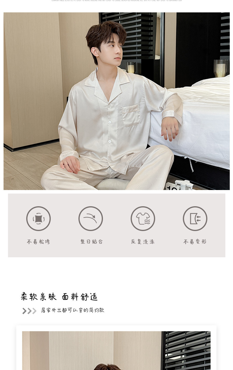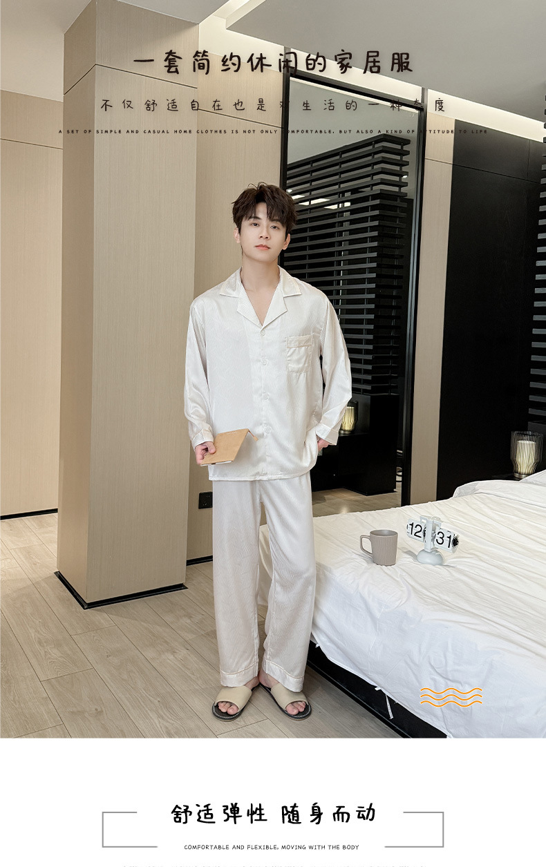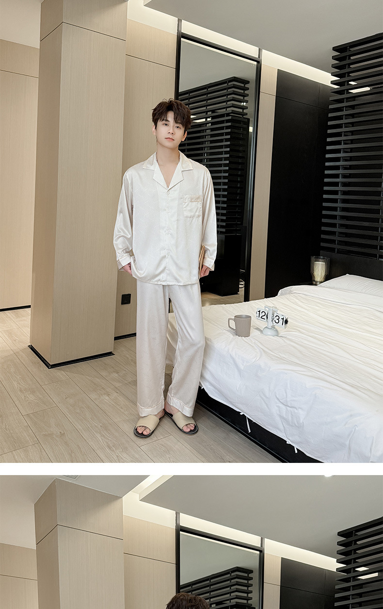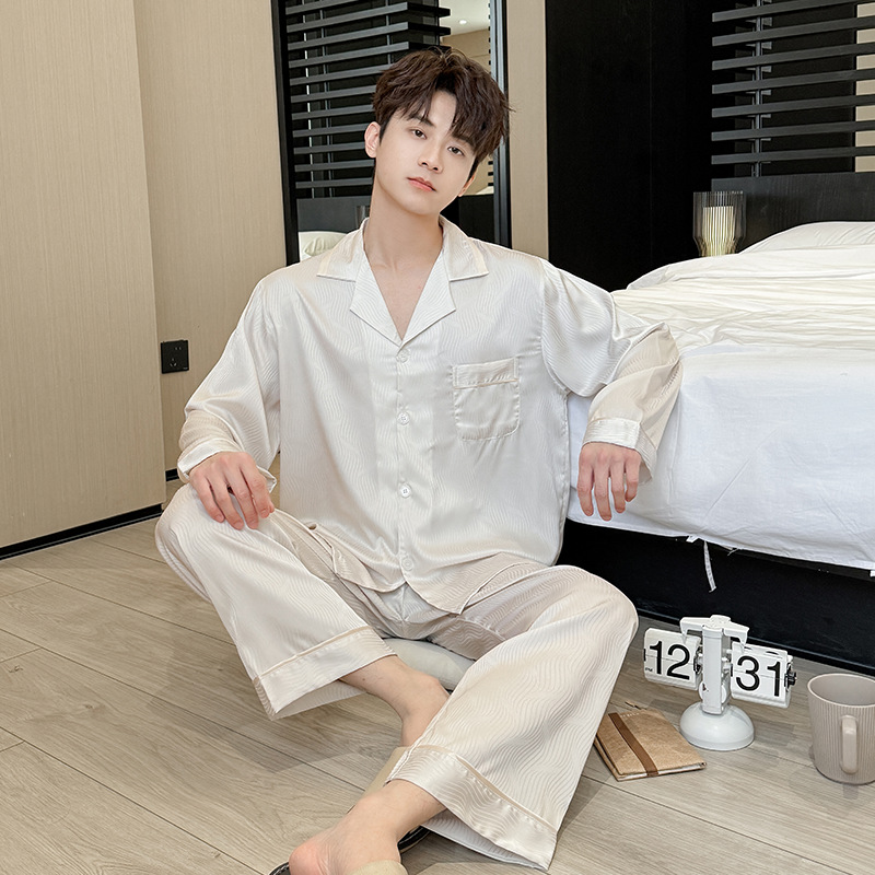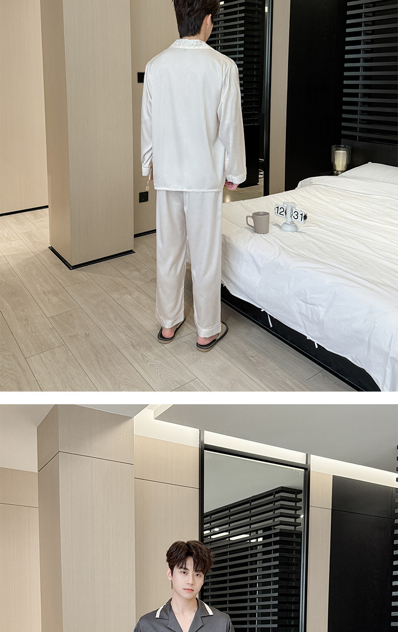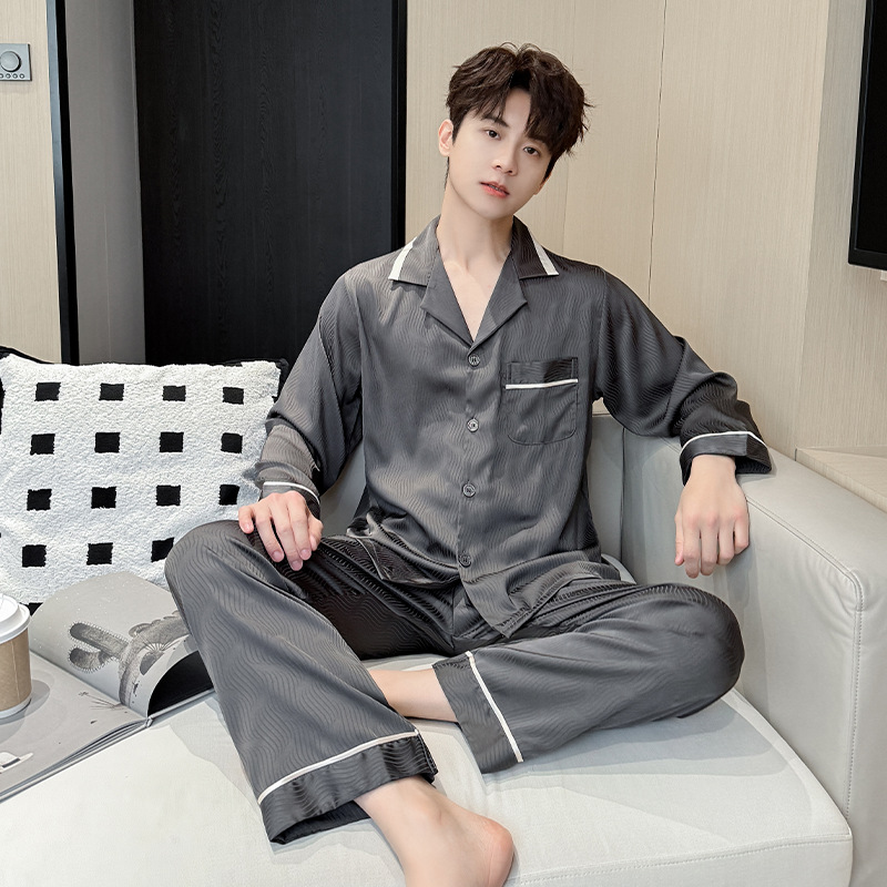 새로운 남성용 아이스 실크 잠옷, 여름용 반팔 라펠 얇은 가정복, 대형 사이즈, 통기성 및 외부 착용 가능 고급 슈트스토어 가기