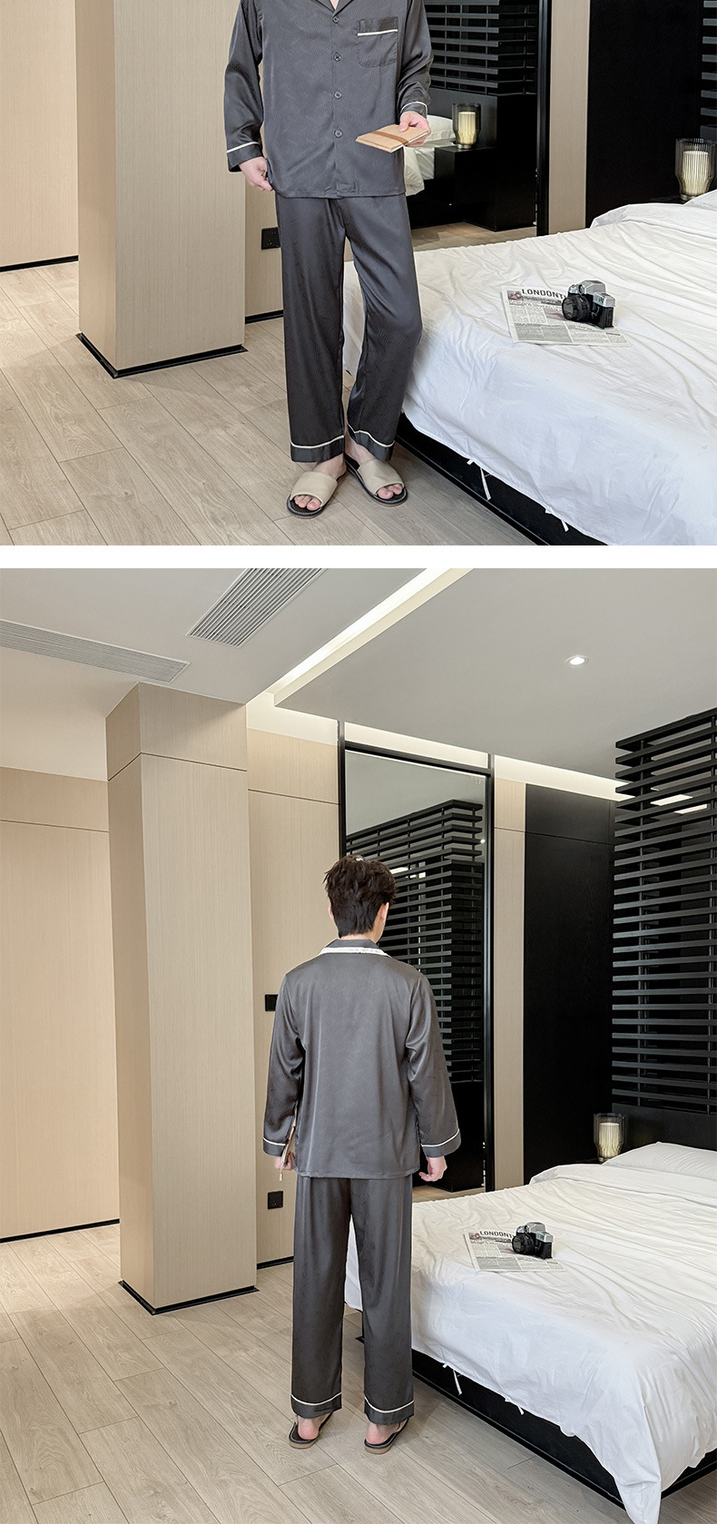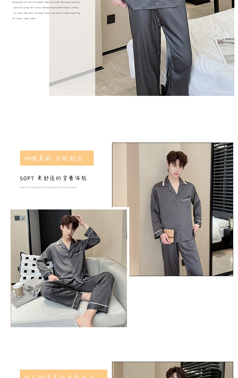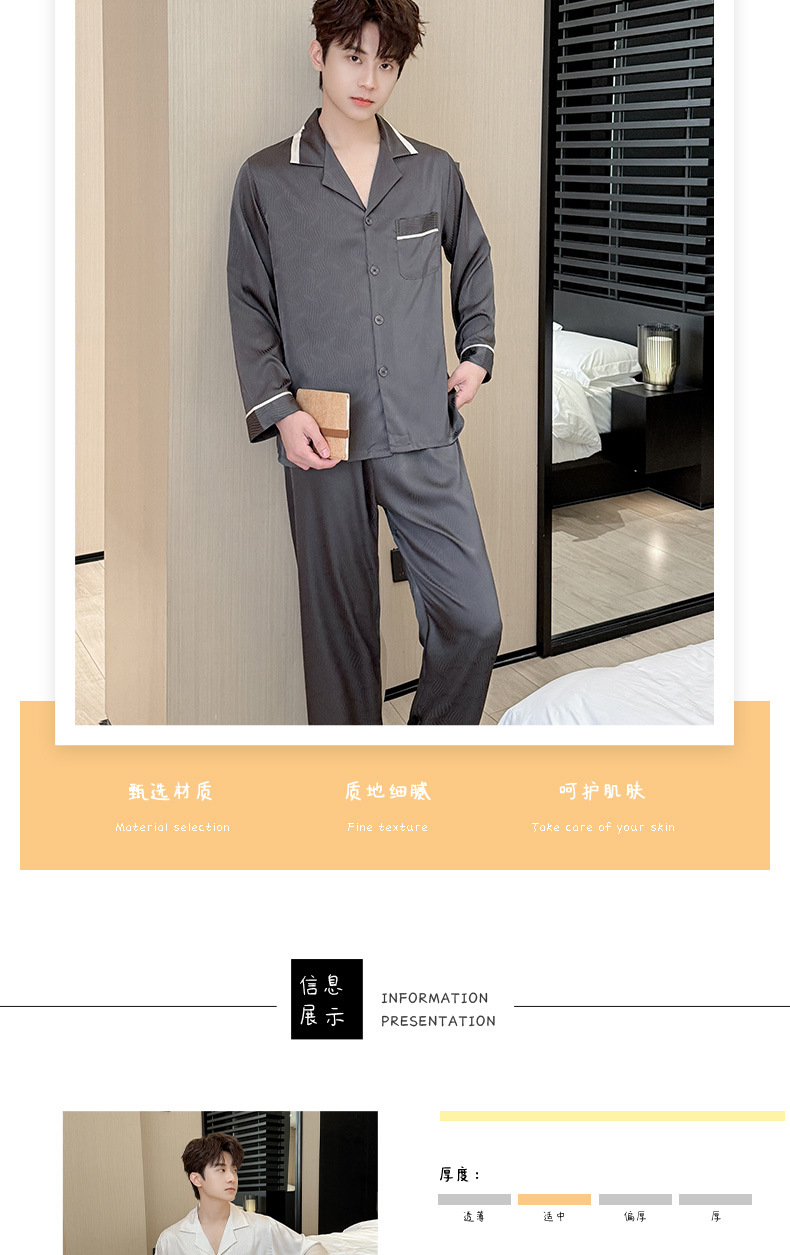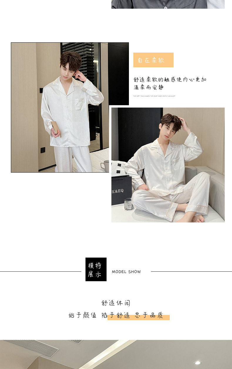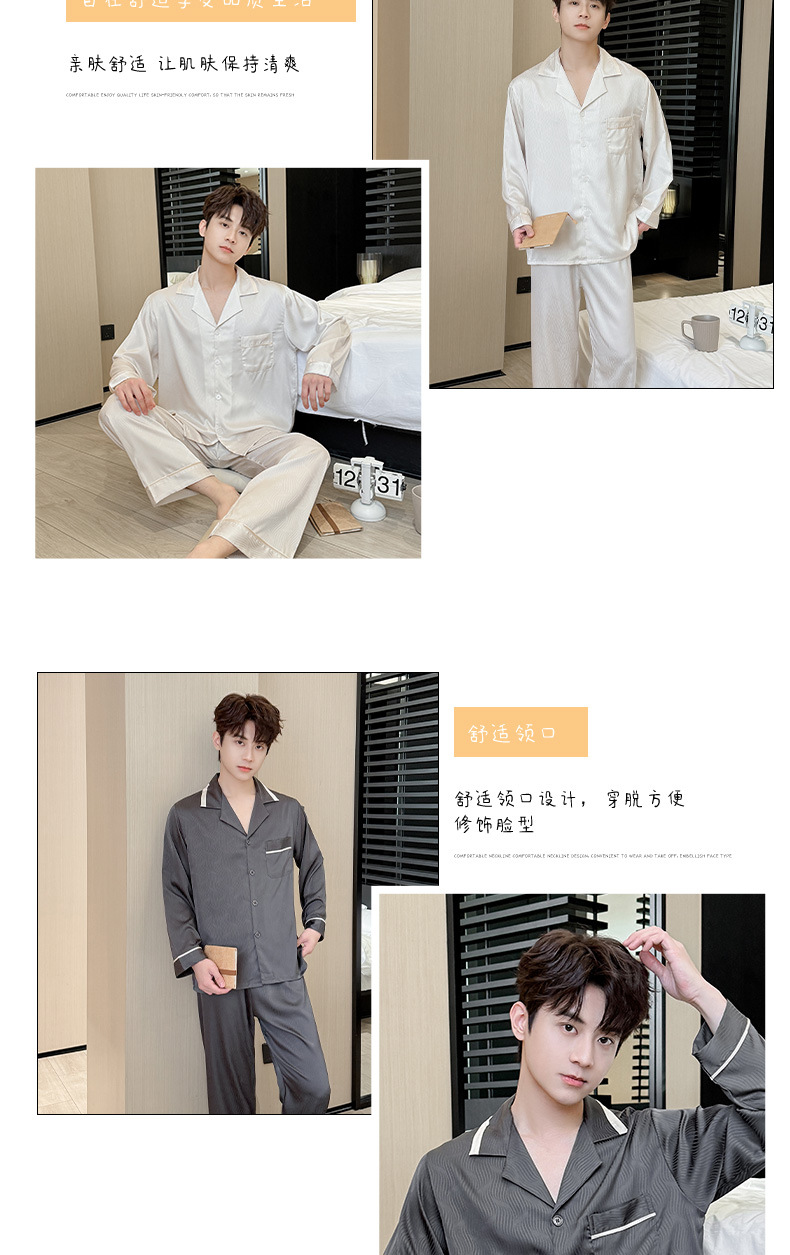 새로운 남성용 아이스 실크 잠옷, 여름용 반팔 라펠 얇은 가정복, 대형 사이즈, 통기성 및 외부 착용 가능 고급 슈트스토어 가기