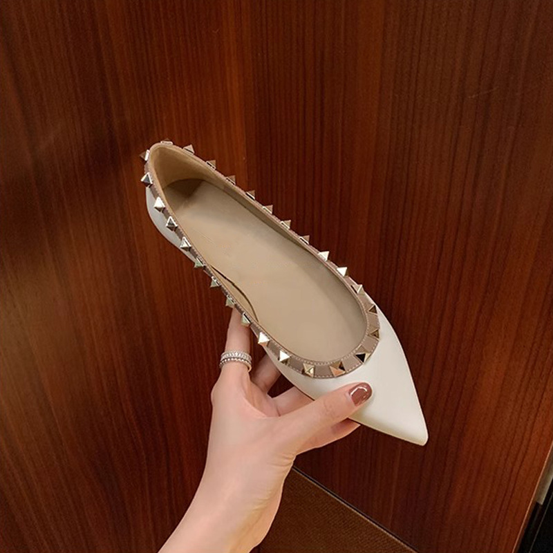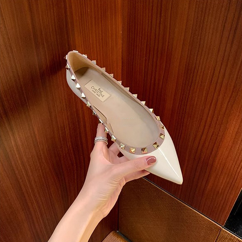 가을 신상품~ 뾰족코 얕은 굽 리벳 플랫 슈즈 여성 구두 웨딩 슈즈 파티 슈즈