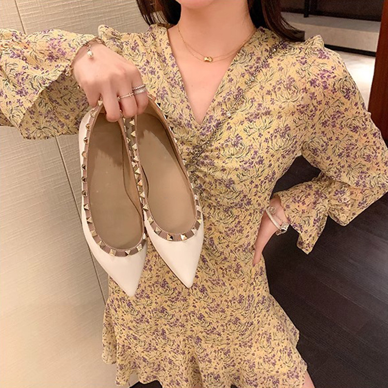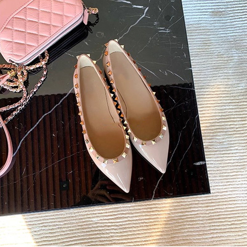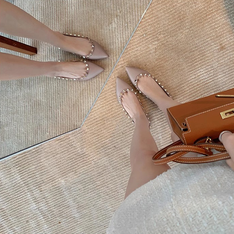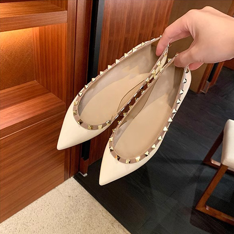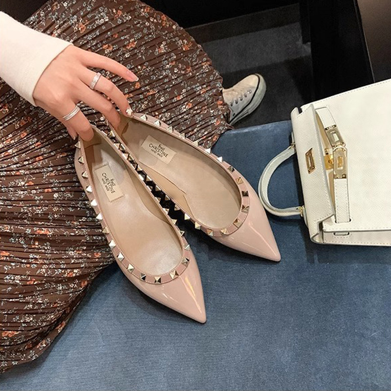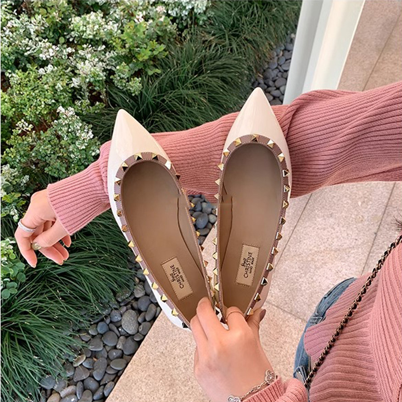 가을 신상품~ 뾰족코 얕은 굽 리벳 플랫 슈즈 여성 구두 웨딩 슈즈 파티 슈즈스토어 가기