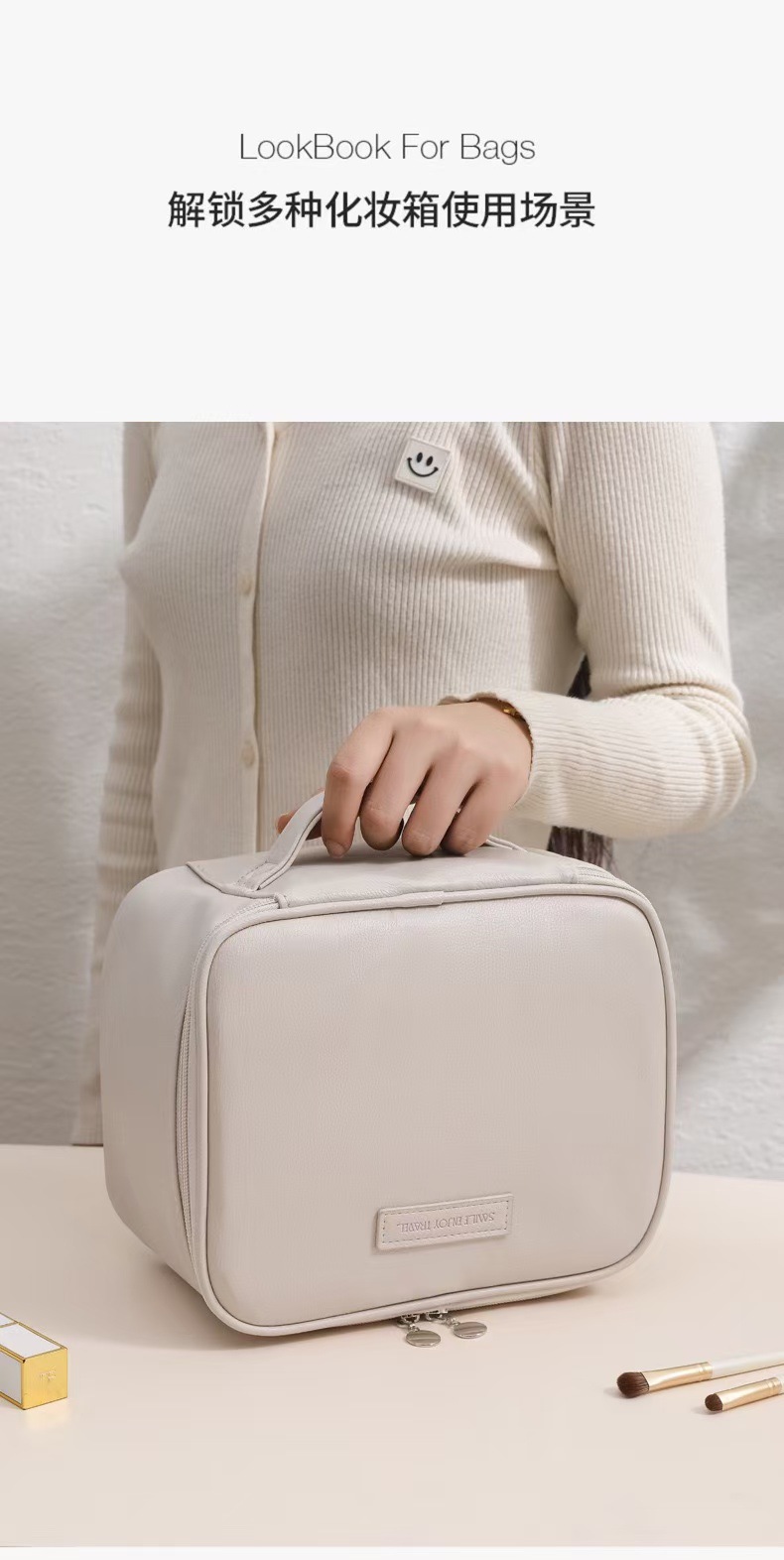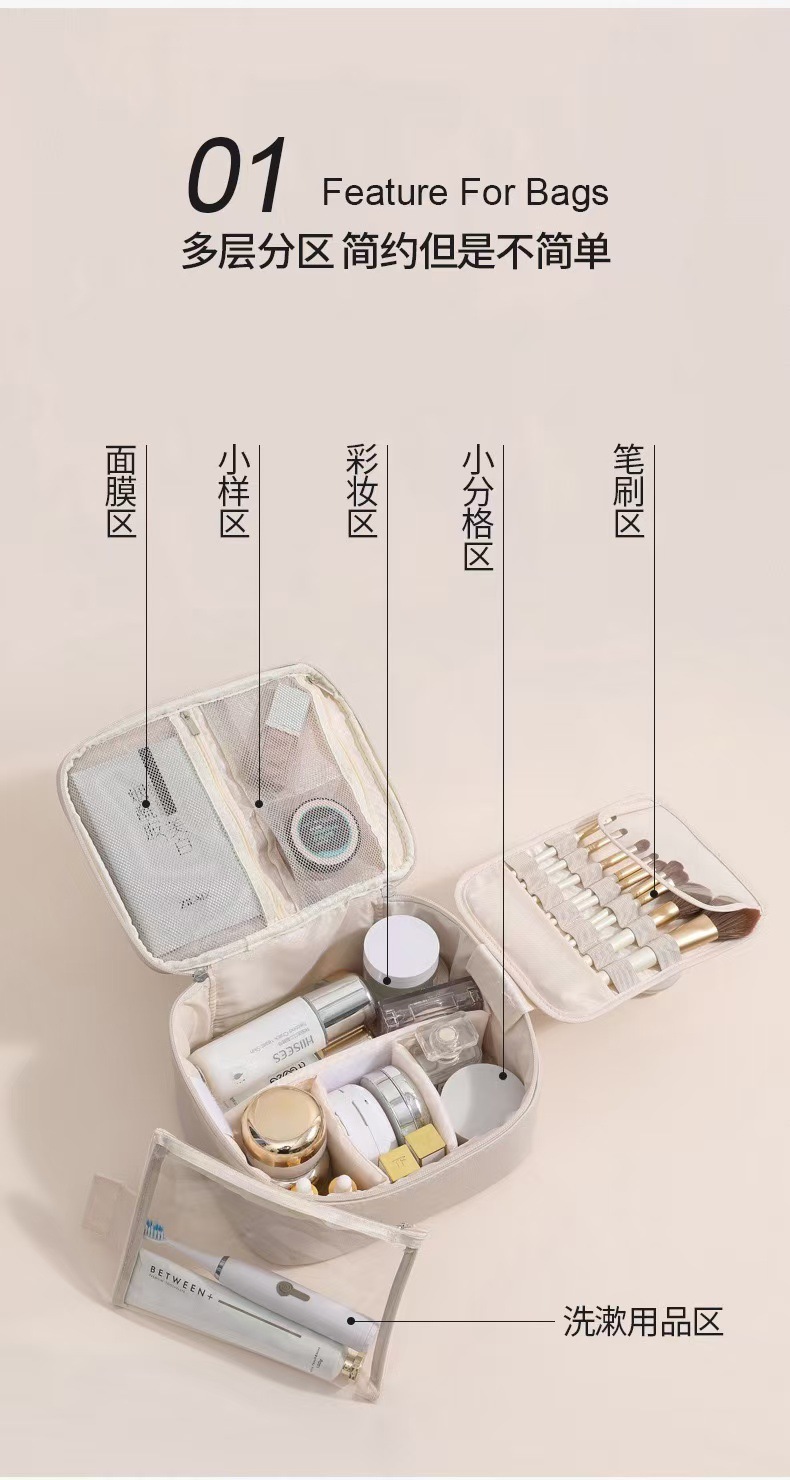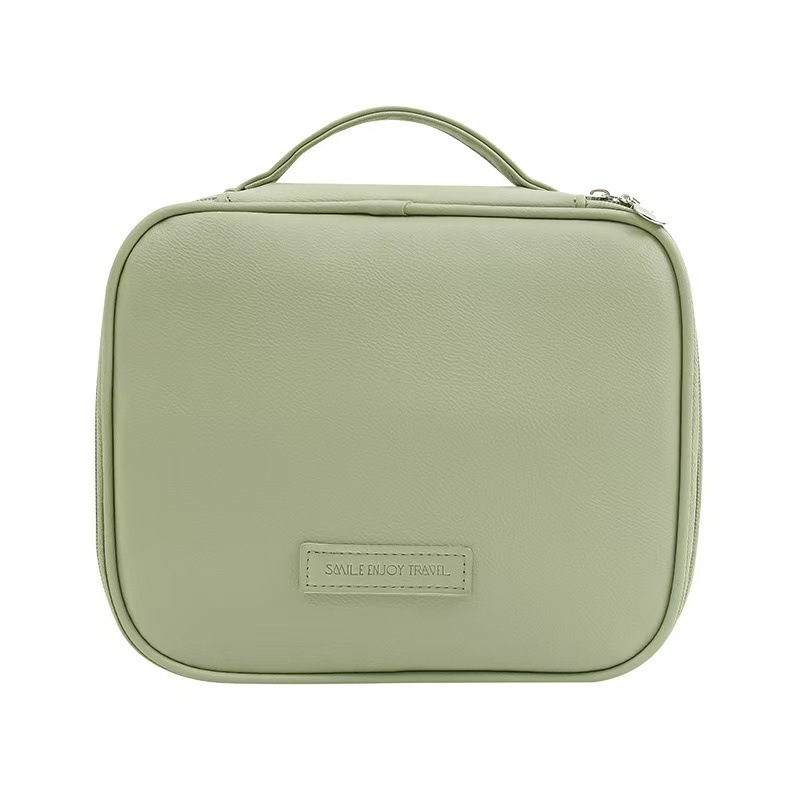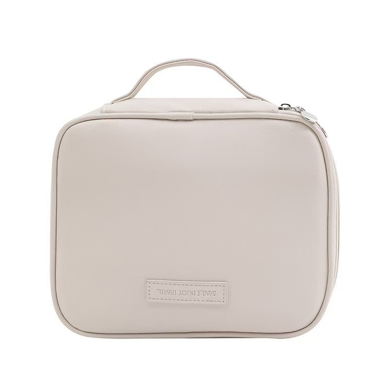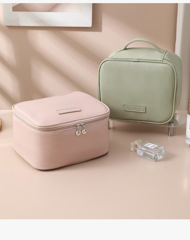 새로운 가벼운 고급 가죽 대형 가방, 매우 부드러운 다중 구획 휴대용 화장품 케이스, 고급스럽고 간단한 대용량 가방