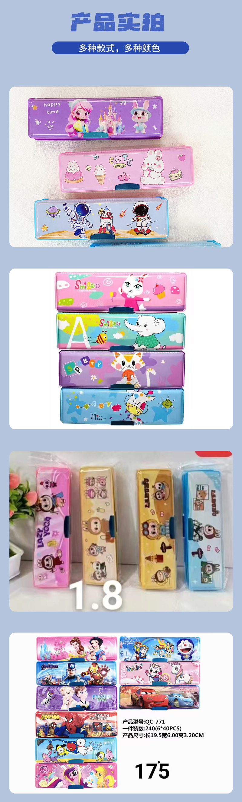 어린이를위한 도매 문구 상자 귀여운 만화 연필 상자 대용량 유치원 초등 학생 만화 문구 상자