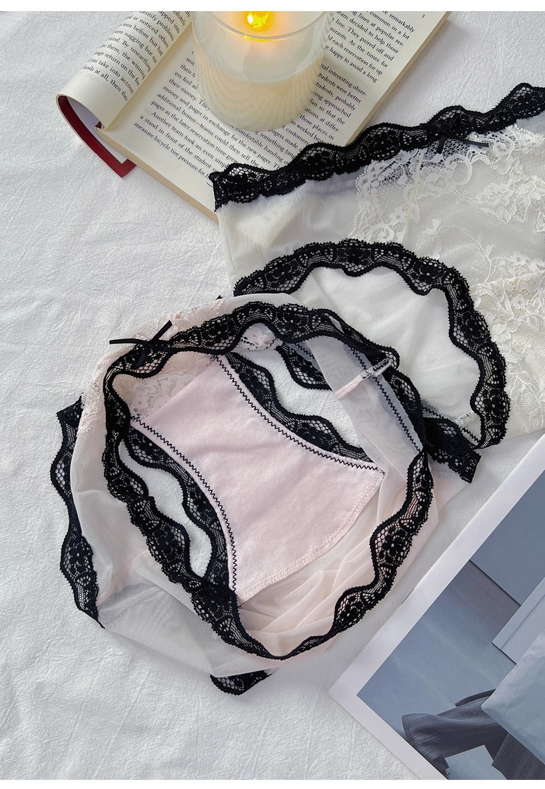 소녀를 위한 순수한 욕망 레이스 팬티, 나비 매듭 중공 메쉬 속옷, 여성용 로우 웨이스트 통기성 순수 코튼 가랑이 팬티스토어 가기
