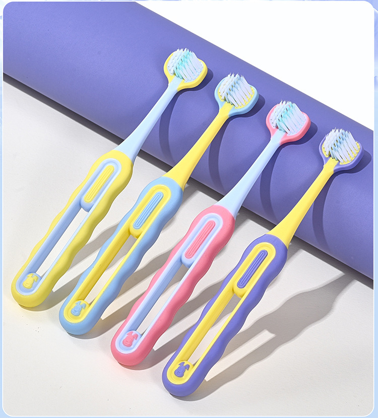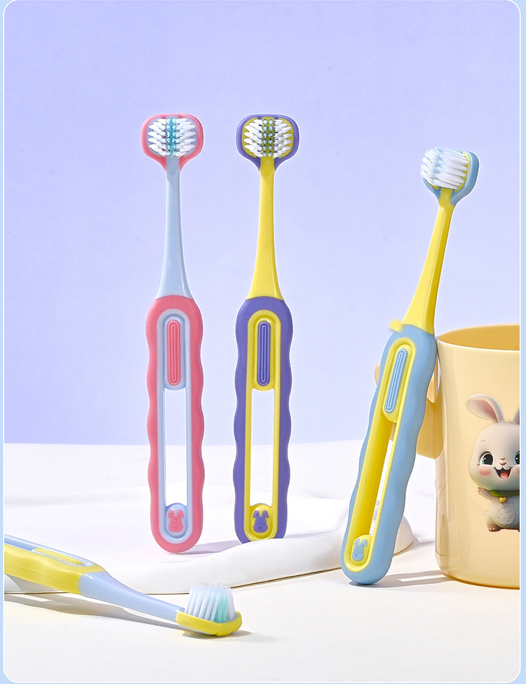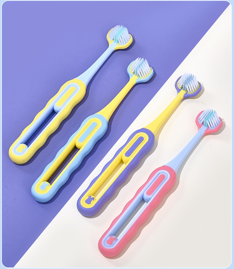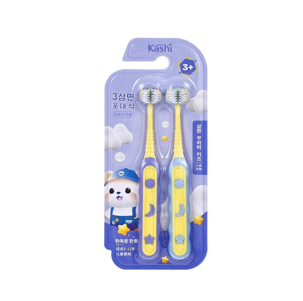 【2개입】어린이용 삼면칫솔 부드러운 칫솔모 3-12세 전용 치아교정기능 입체적 세정 치아교정기간